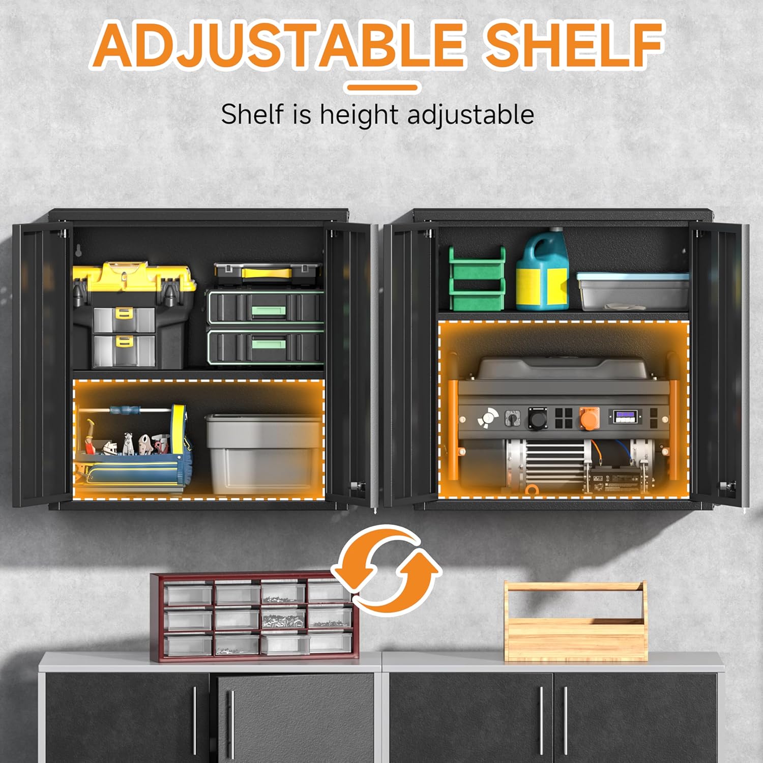 Metal Garage Wall Cabinet with 2 Doors and 1 Adjustable Shelf,Lockable Floating Tool Cabinet with Pegboard,Black Steel Storage Cabinet for Kitchen,Office,Garage,Laundry,Warehouse(Black, 26" H)