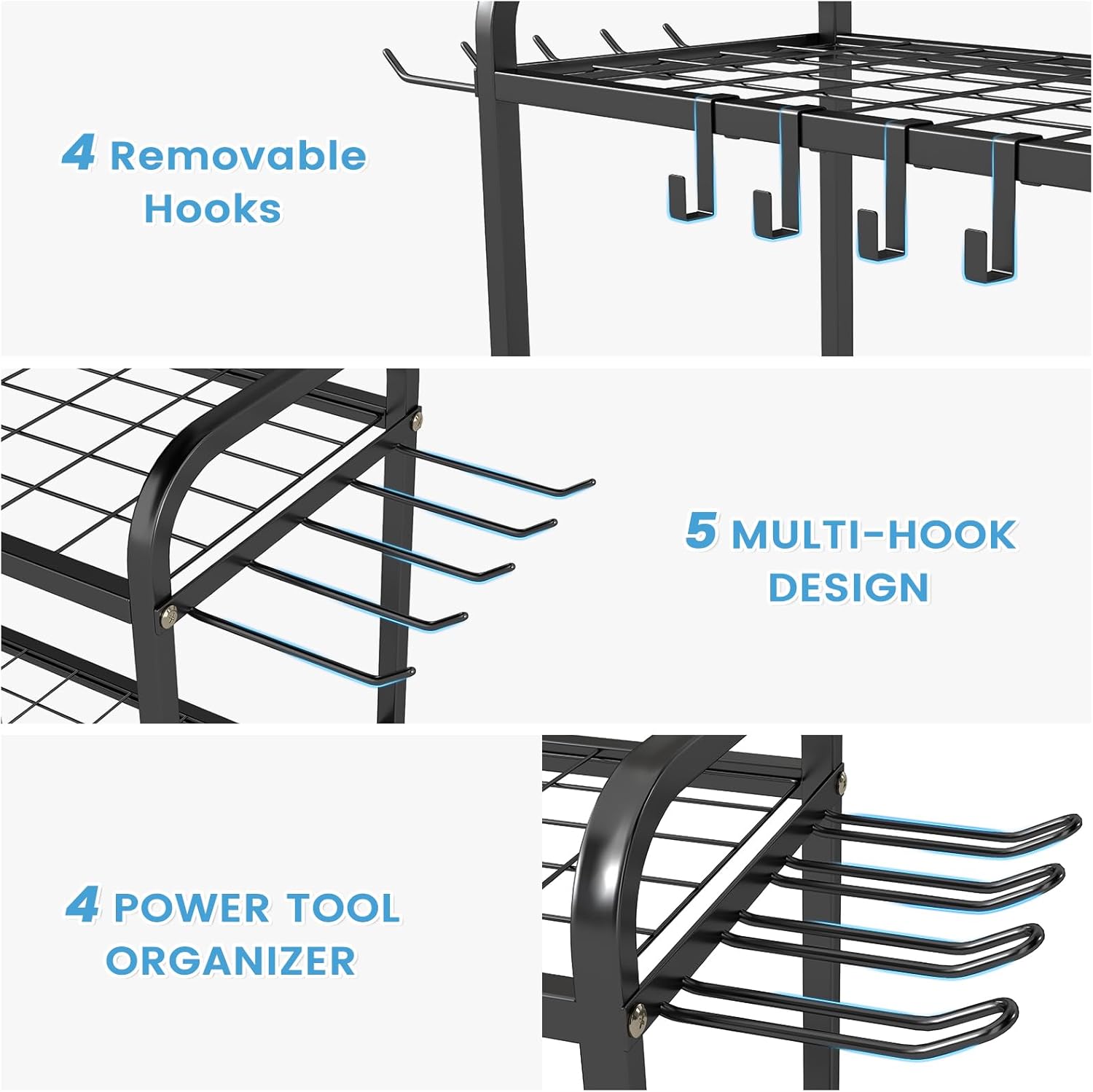 - Ultimate organization: Tired of messy tools scattered everywhere? This heavy-duty Garden Tool Organizer is your all-in-one storage solution, designed with 35 tool slots (each 2.36" wide) to securely hold shovels, leaf rakes, rake, pitch fork and broomsâplus two side panels with 5.5" built-in hooks (perfect for hanging towels, baskets, or coiled hoses). But waitâthereâs more! Weâve included 4 additional movable hooks to customize your storage