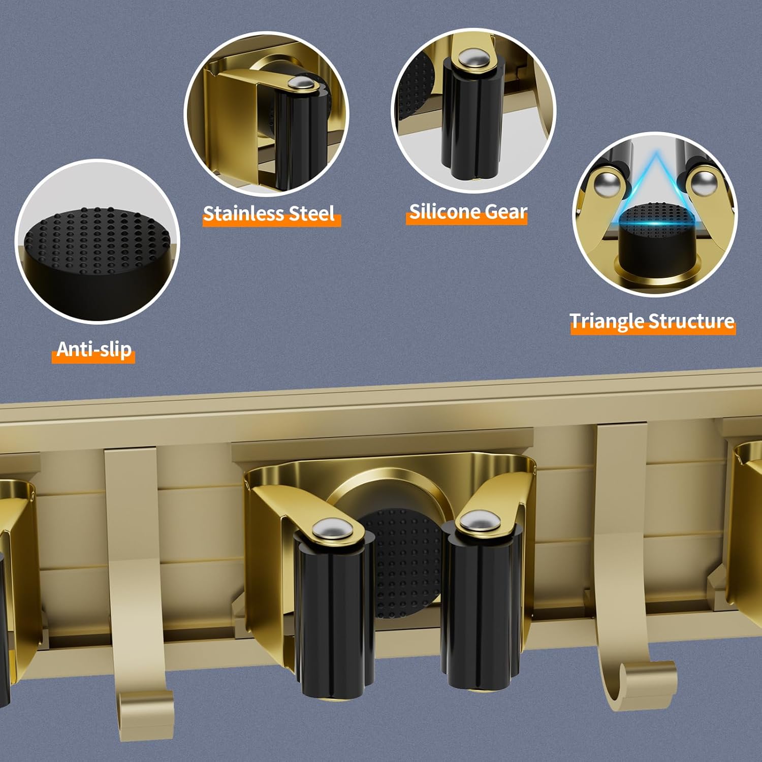 - One-Handed Push: It's easy to install, and it's easy to take and put back cleaning items. Non-slip grip locks secure tools like brooms and dusters with a one-handed push