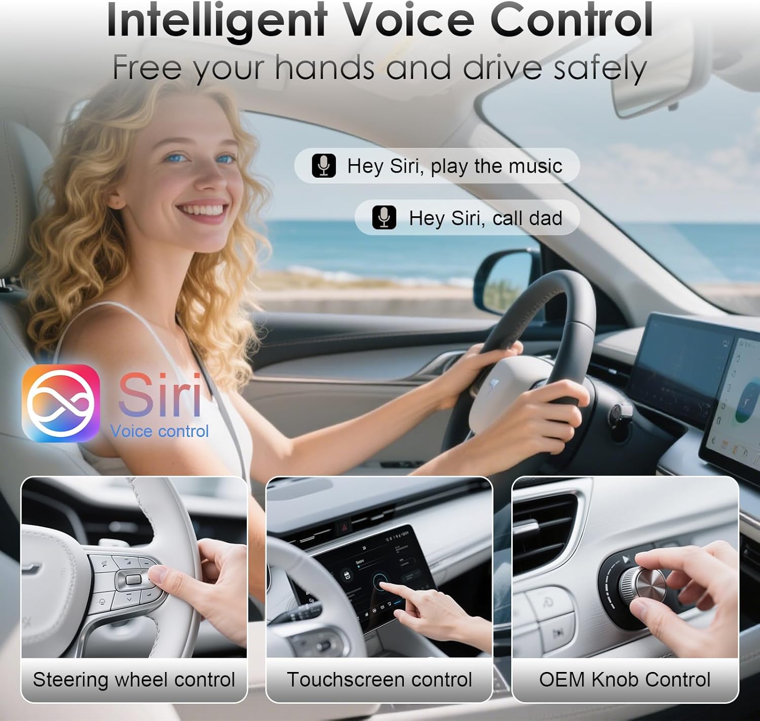 - Smart Voice Control : Stay focused on the road with Siri voice commands and steering-wheel controls. Answer calls, change songs, or get directions without touching your phone