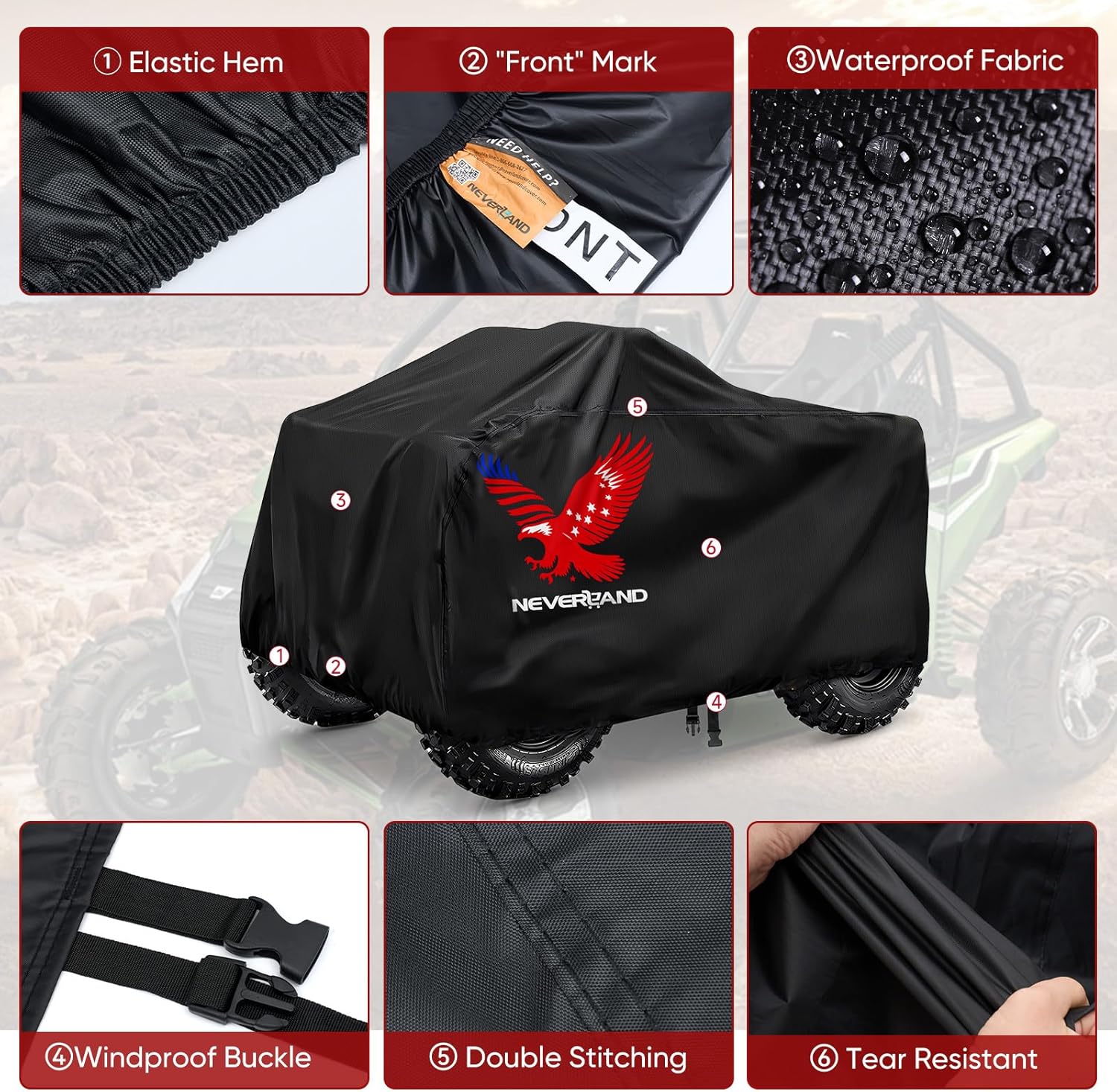 Neverland ATV Cover, Waterproof Heavy Duty 4 Wheeler Cover with Buckle, Dustproof Anti UV Windproof All Weather Outdoor Storage Quad Cover for Polaris Sportsman Yamaha Honda Coleman