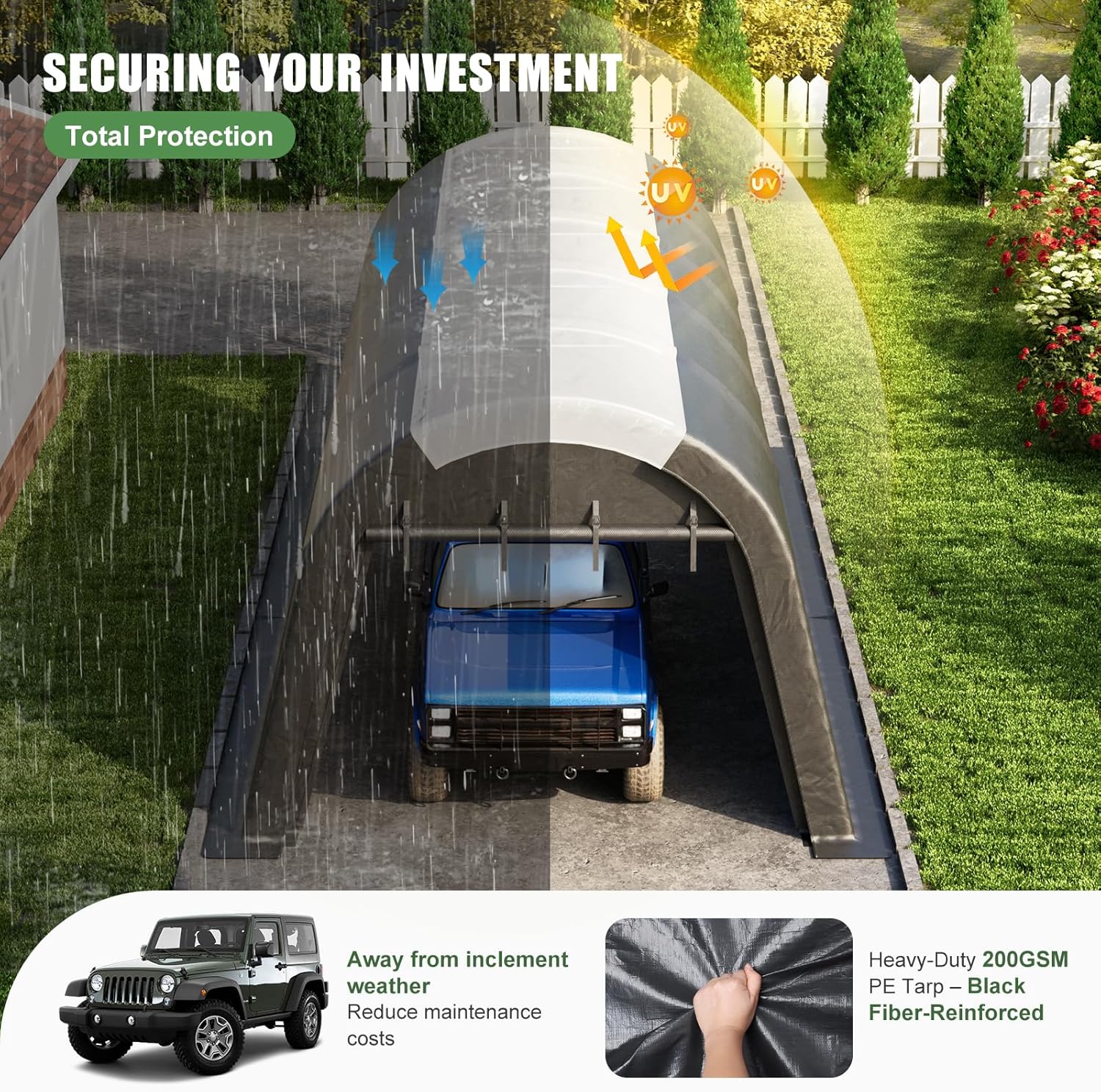 - Secure Grounding for Peace of Mind: 🏡 Stay protected, even in severe storms! ⛈️ Our carport includes 16 heavy-duty steel anchor kits for secure ground fixation, plus ropes to further secure the cover to the frame. This ensures your carport remains steadfast, even in high winds and heavy snow. 🔒