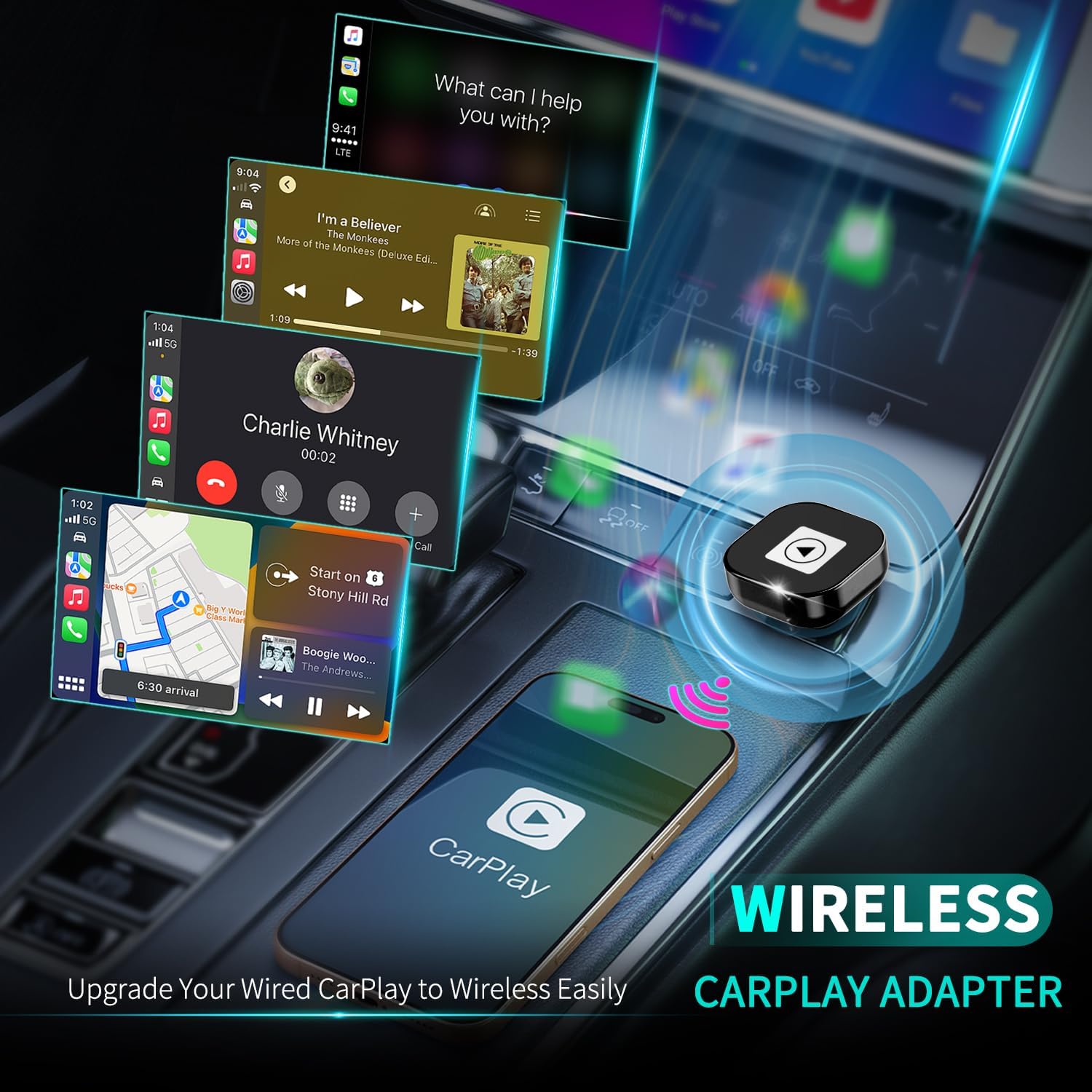 - **Ditch the Clutter – Experience True Wireless Freedom!** – Tired of fumbling with cables every time you get in the car? Our Wireless CarPlay Adapter is the smallest,most reliable solution,that converts your factory wired CarPlay to wireless in seconds