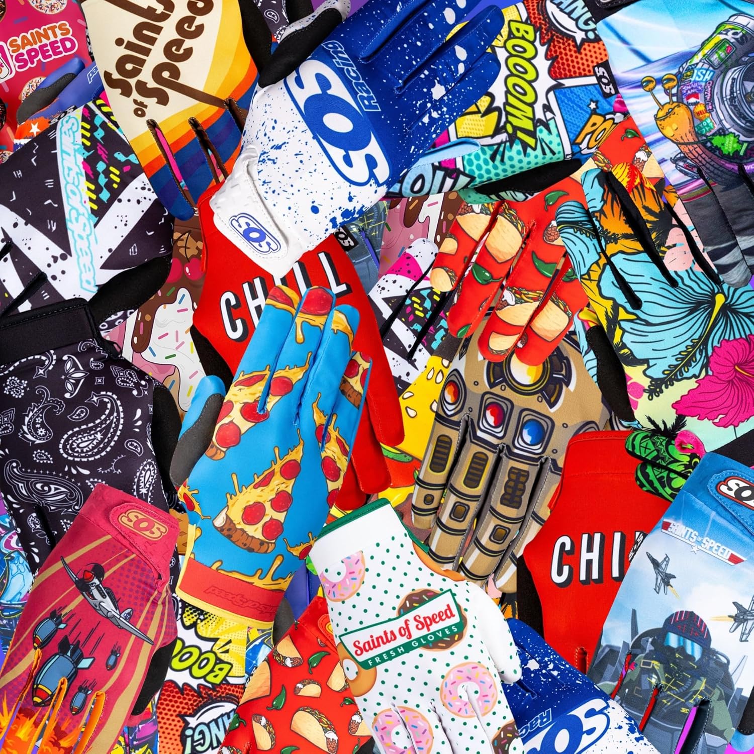 - Yes, these are some fun ones, but make no mistake, these are no mere novelty dirt bike gloves. Gloves are a highly technical garment, which means they are easy to get wrong and hard to get right. Our bike gloves don't just look cool but feature an anatomically correct fit designed to provide remarkable comfort, accurate sizing, and a premium feel. The hallmark of a good glove is one that goes unnoticed on the hands while riding, and that's exactly what these deliver!