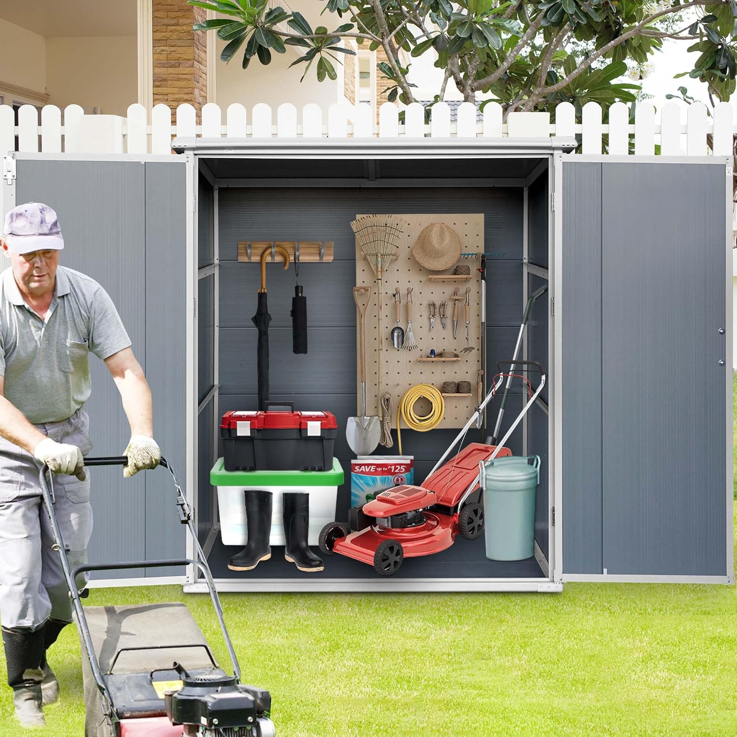 - Spacious and Practical Storage Space: This outdoor storage shed with floor, measuring 5 x 3 feet, offers generous storage capacity for a wide range of garden tools, outdoor items, and sports equipment. With the ability to securely store both small accessories and larger items, this storage sheds helps you organize efficiently, optimizing your outdoor space and keeping your backyard neat and tidy