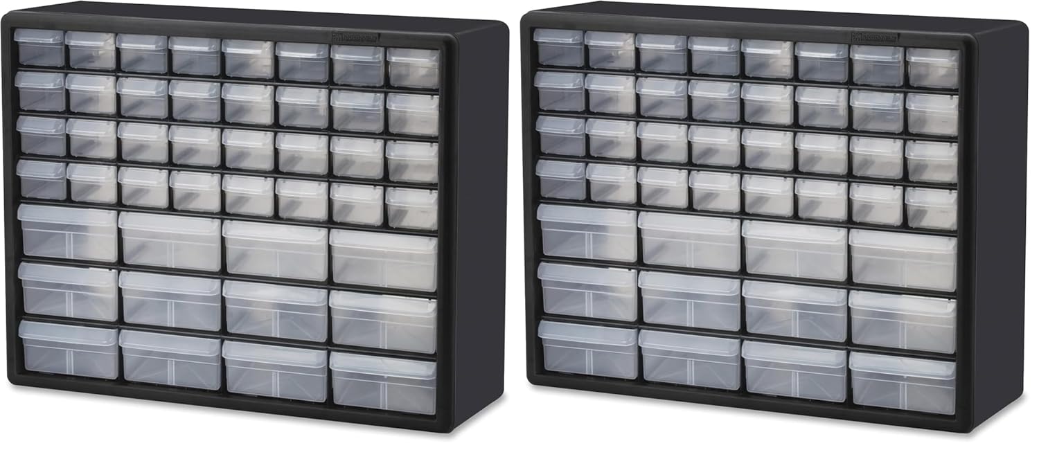 Akro-Mils 44-Drawer Plastic Drawer Storage Cabinet for Garage Organization, Bead Organizer, Building Bricks Storage, Teacher Toolbox, Makeup Organizer, 20-Inch W x 6-Inch D x 16-Inch H, 10144 Black