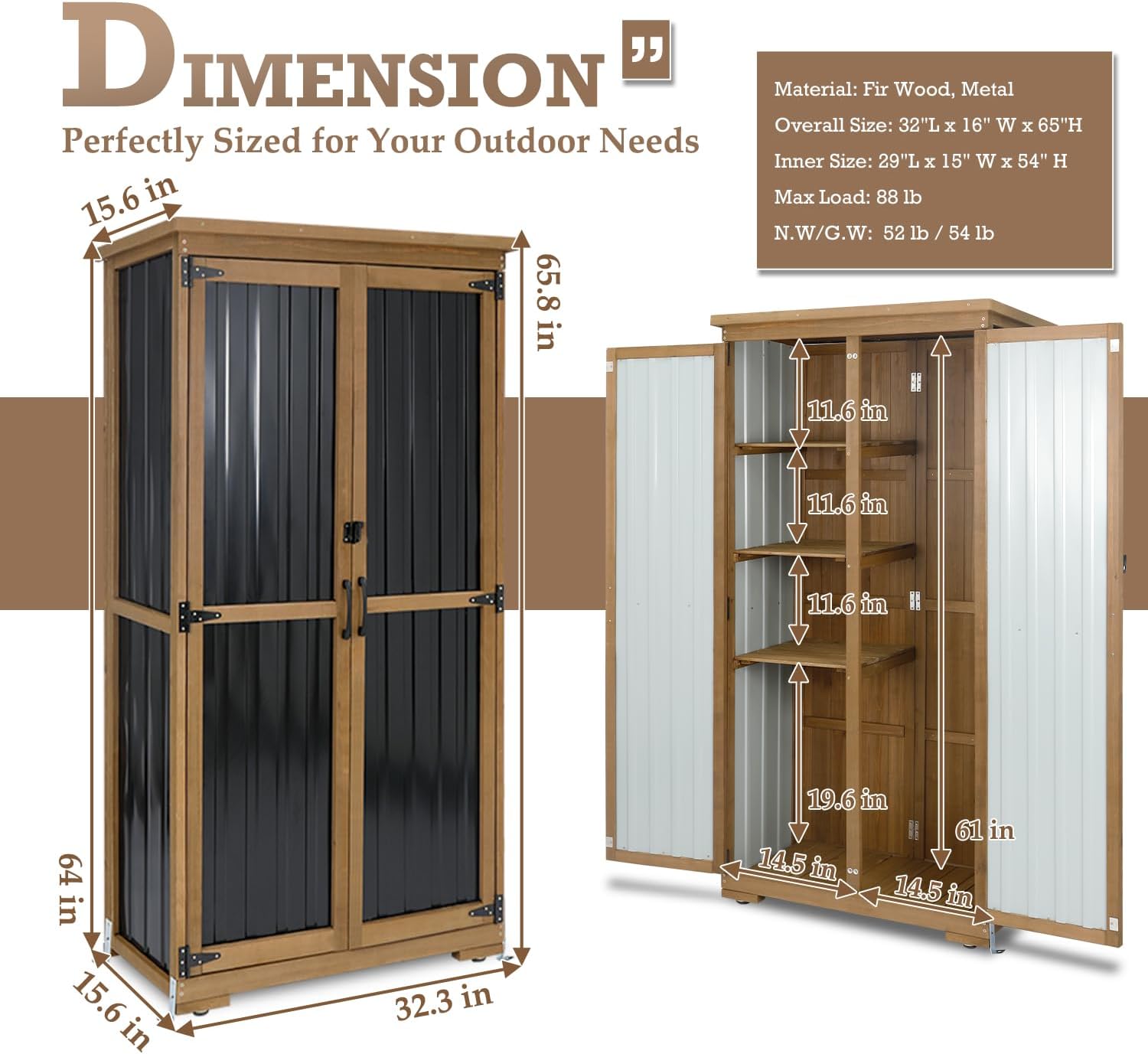 - Product Dimensions : 15.6"D x 32.3"W x 66"H