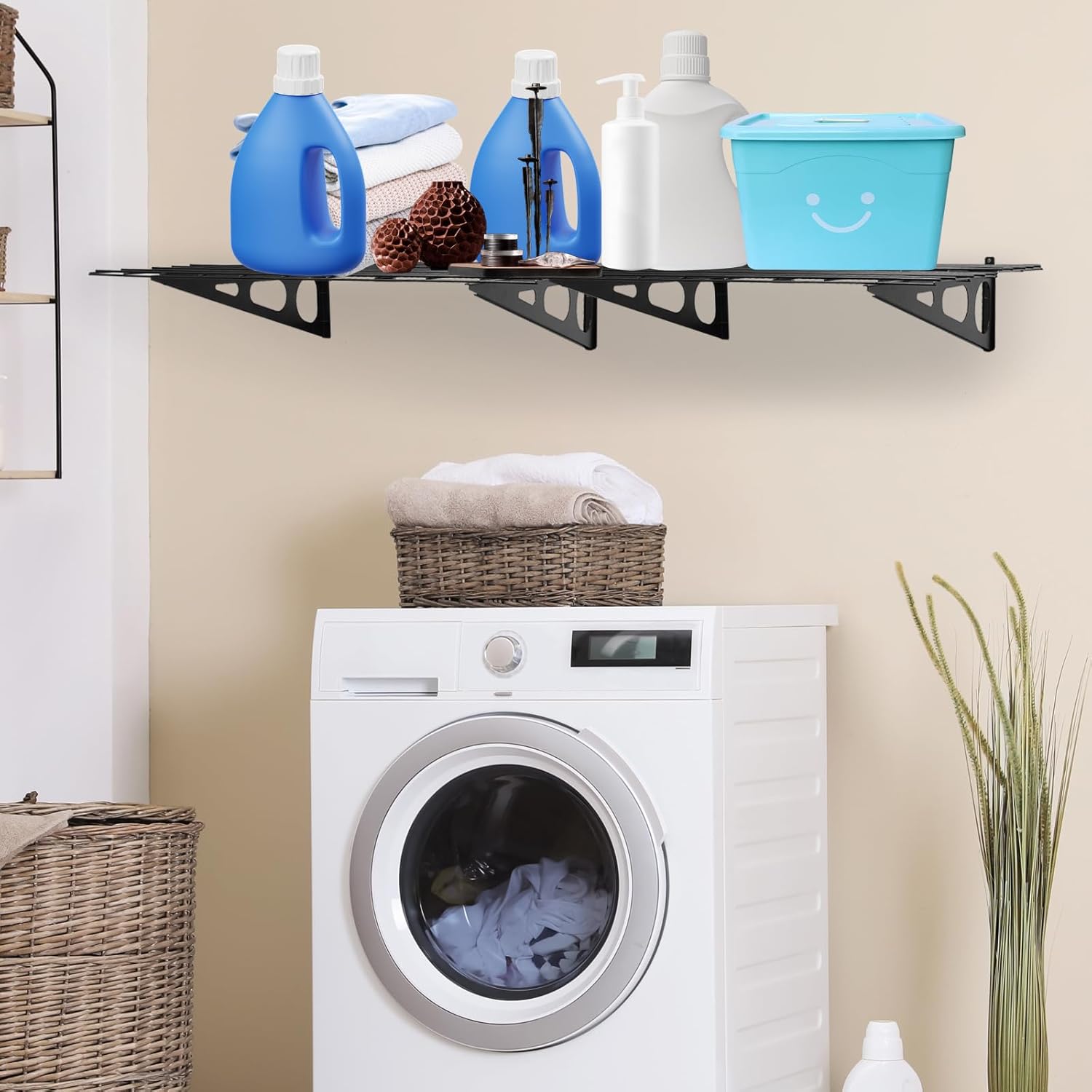 - Easy Installation: Composed of 4 1'x3' shelves per tier making our garage wall shelf easier to install. Suitable for 16/18/24 inch wood studs and concrete wall for easier adjustment. If installing on the wood studs, please measure the distance