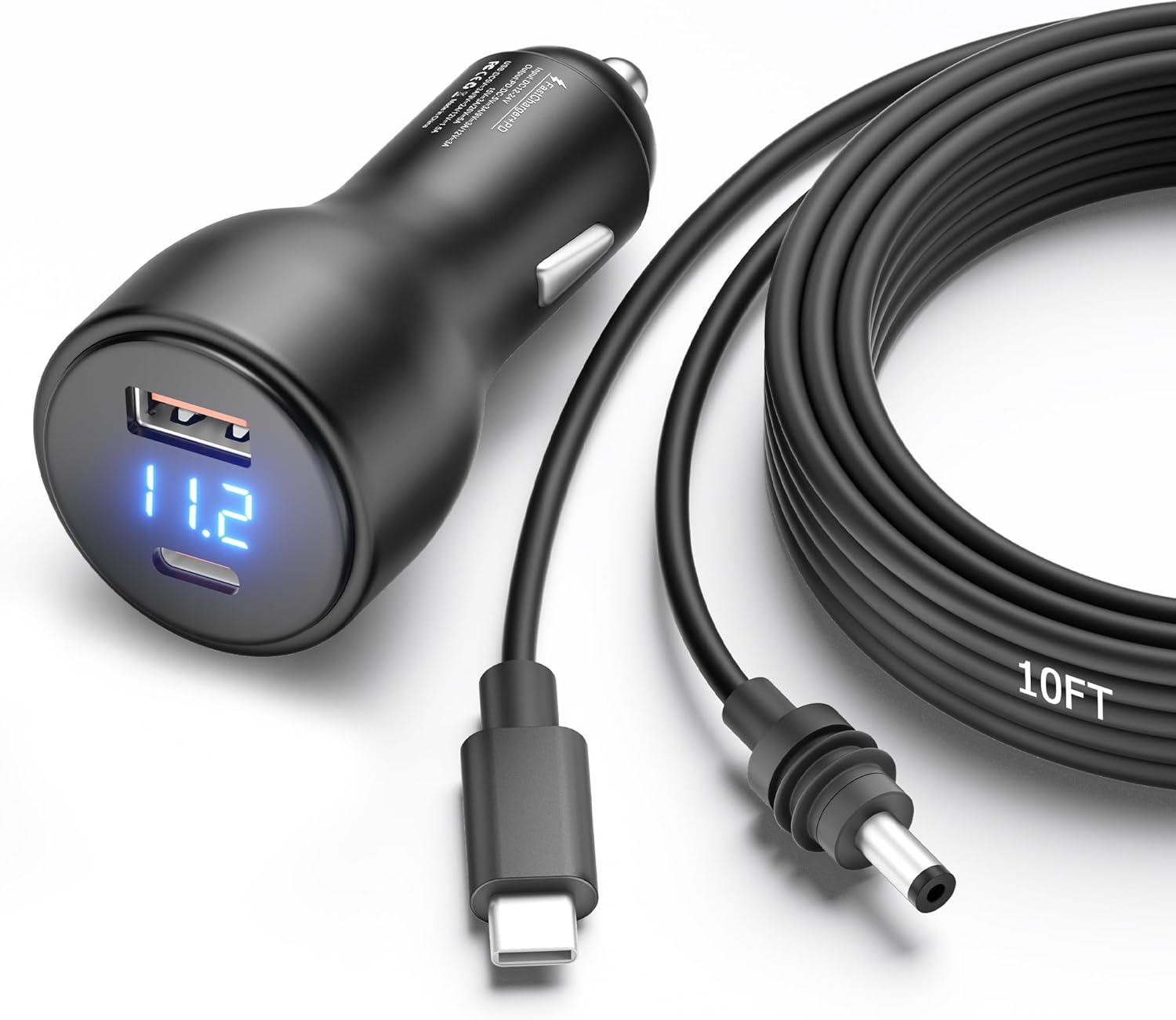 3 in 1 Starlink Mini Cable Cigarette Lighter 10FT Car Adapter for Starlink Mini USB C to DC Power Cable and Car Charger Smart Boost 12V to 20V/100W with Voltmeter USB C 100W/USB A 18W Port 18AWG 3M