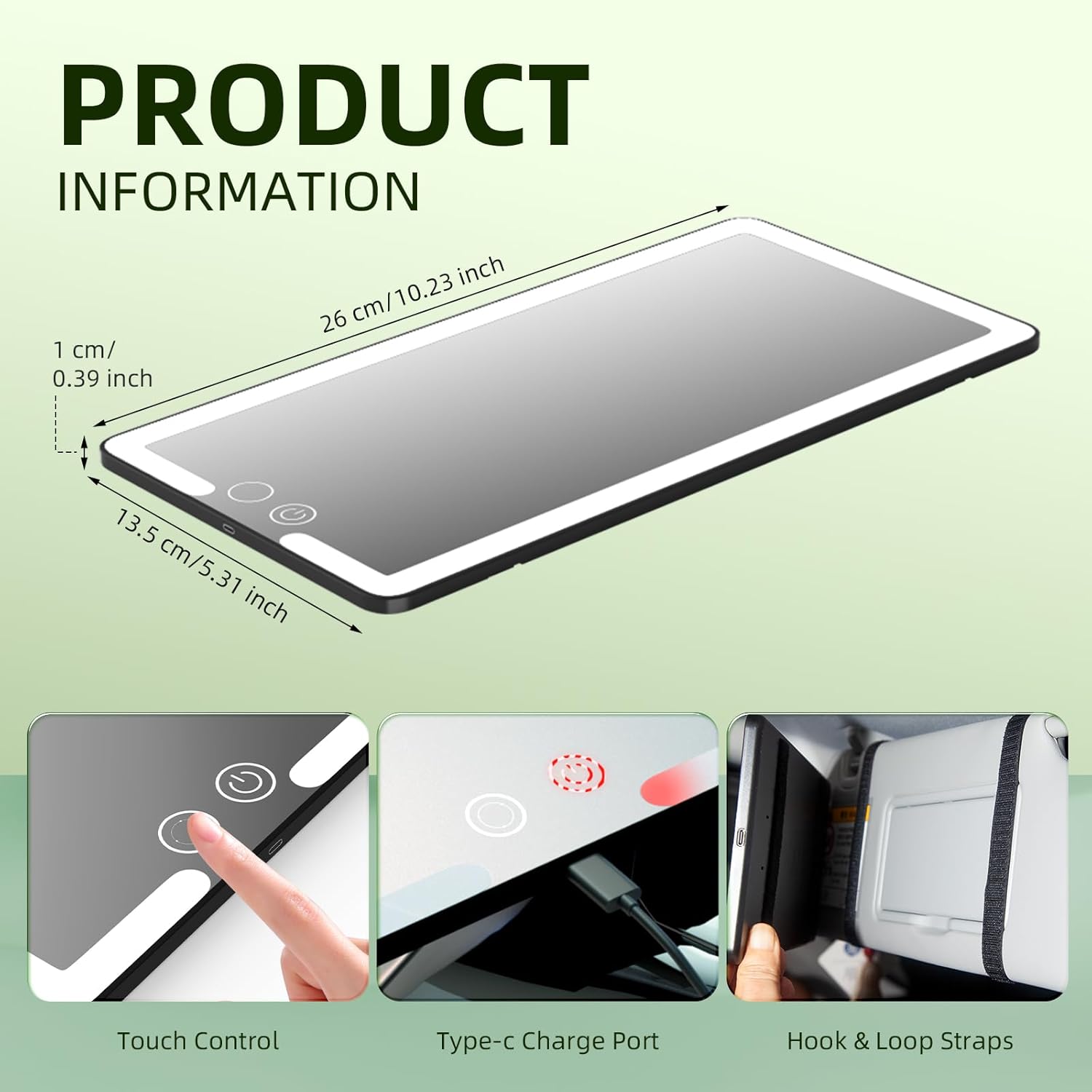 2 Pcs Car Sun Visor Vanity Mirror,Dimmable Rear View Visor Makeup Mirror with 3 Light Modes,Black