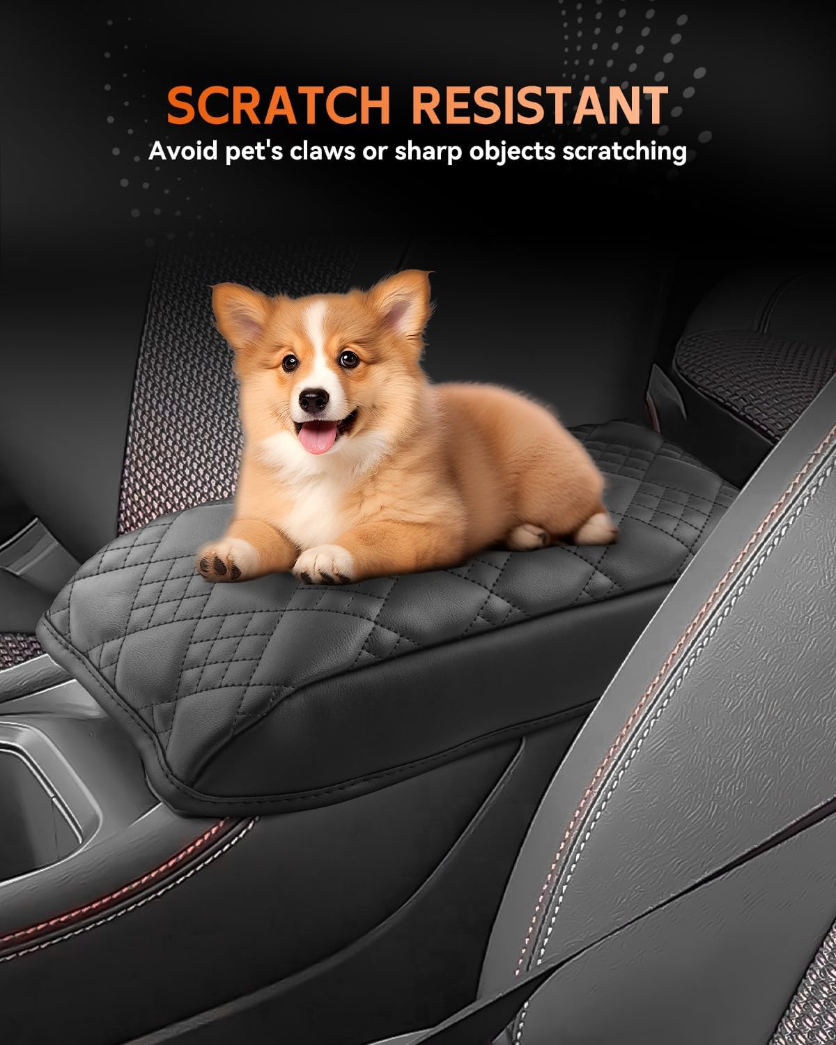 - [Excellent Scratch Resistance] The car Armrest Cover mat is made of high quality PU microfiber leather, thick enough to keep out pet paws, dust and sticky fingers. The surface is waterproof, wear-resistant and durable, breathable, light weight and easy to wipe clean of dirt.