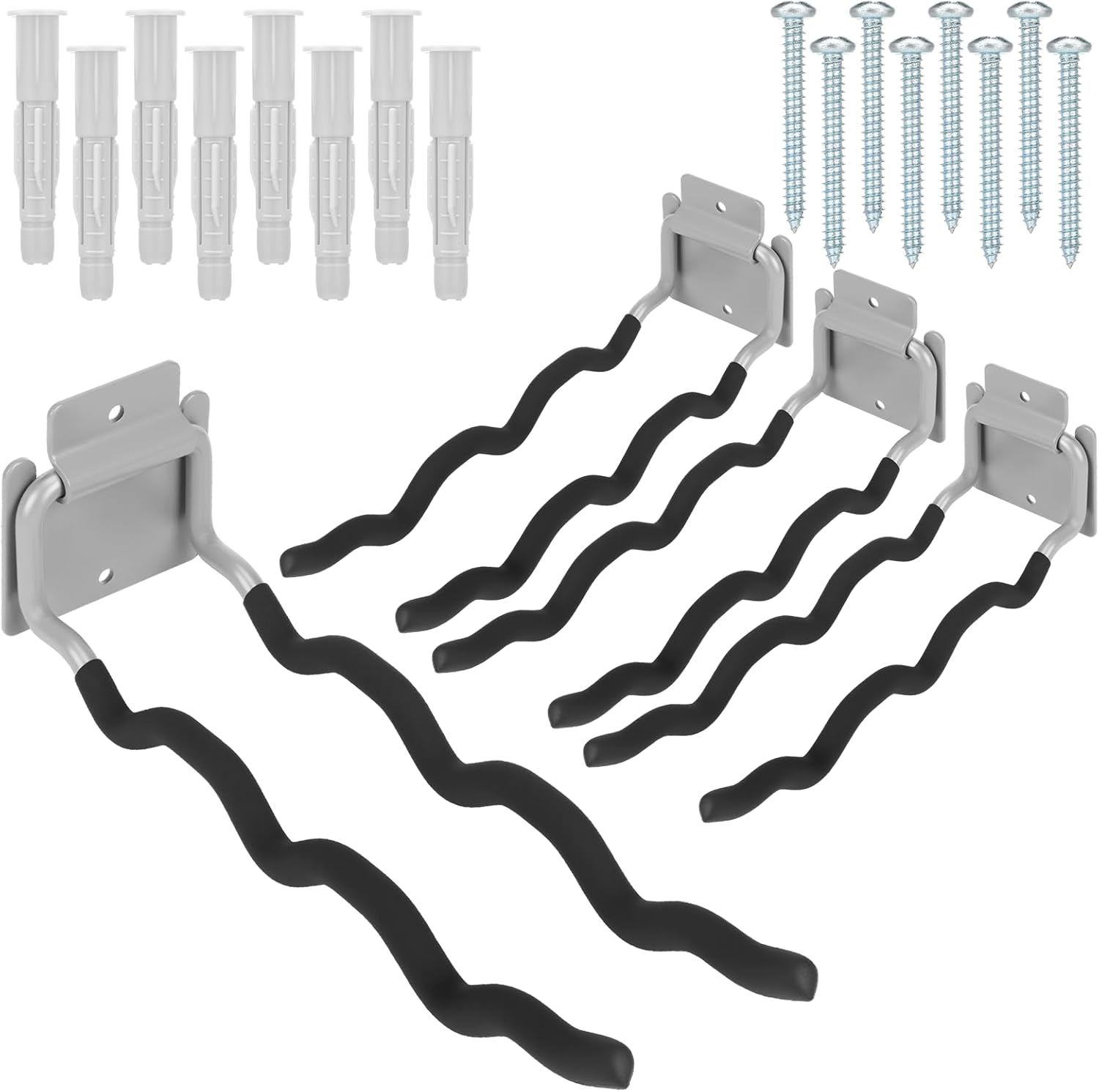 4 Pack Heavy Duty Garage Hooks Ladder Hangers for Garage Wall Flip up Wave Hooks for Shovels Chairs Durable 12" Foldable Tools Holder for Yard Garden Tool Organization