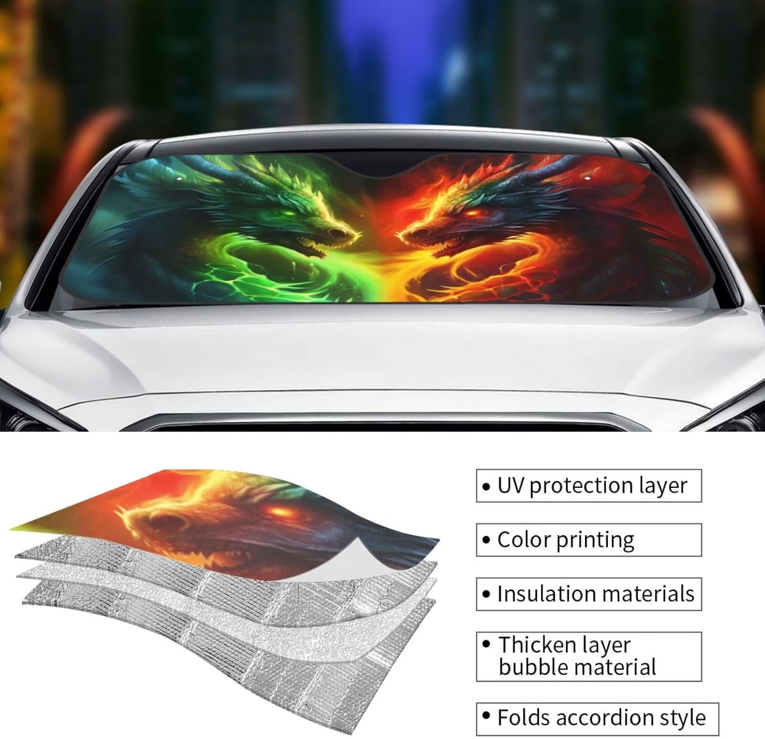 Dragon Car Sun Shade Windshield Sunshade Foldable Front Window Shield Cover for Truck SUV