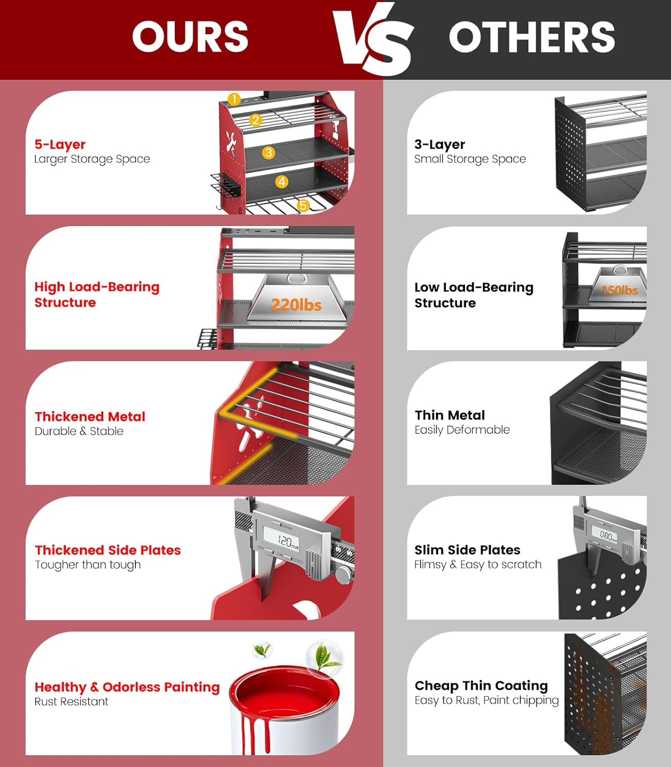 - γConvenient Garage Tool OrganizationγThe power tool organizer with charging station offers both functionality and convenience for your garage or workspace. Featuring a 6-outlet charging stationοΌ125V-15A οΌwith a 6.56ft power cord, this 5-tier wall mount blends tool storage with seamless power access. With space for multiple tools, batteries, and accessories, power tool wall organizer ensures everything is stored neatly and always within reach, making your projects smoother and more organized