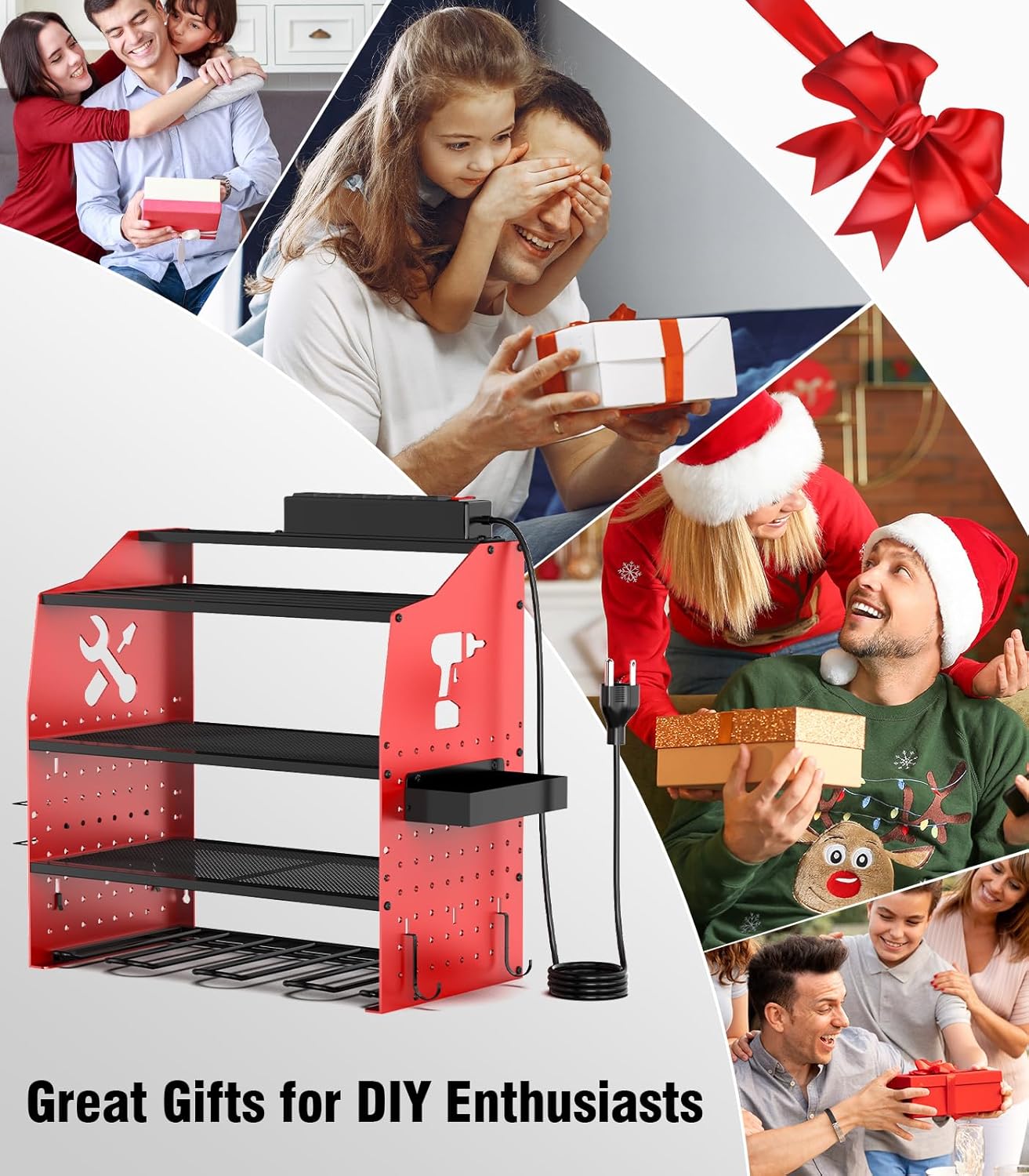- γPerfect GiftγThe power tool wall organizer is not only a practical solution for organizing your tools, but it also makes for a thoughtful and unique gift. Perfect for birthdays, anniversaries, Father's Day, Thanksgiving, Christmas, this wall mount tool organizer perfect for DIY enthusiasts. Its functional design, combined with the convenience of a power tool charging station, brings joy and comfort to those who enjoy keeping their garage or workspace tidy. Whether for personal use or as a heartfelt gift, this organizer adds value and thoughtfulness to any occasion