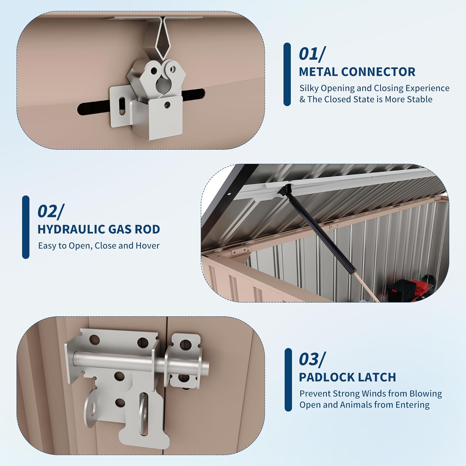 - Durable Build with High Quality Materials: Constructed from galvanized steel and finished with a black powder coating, this metal garbage can storage shed is built to last. The use of such materials ensures exceptional sturdiness, making it suitable for long term outdoor use. Its well thought out structural design endows the top with a remarkable load bearing capacity, allowing it to endure winds up to six levels. Moreover, the material's resistance to UV rays means that over time, even with con