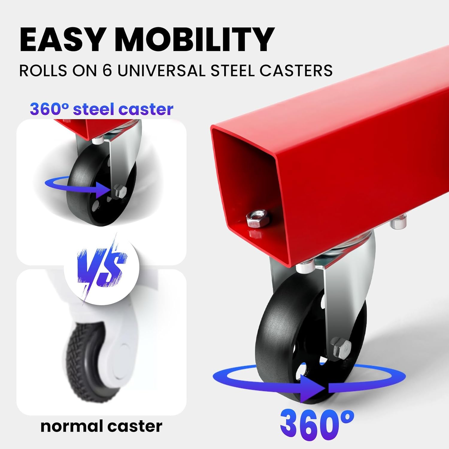- 【Smooth 360° Mobility】: Equipped with 6 heavy-duty 360° steel casters (0.61" thick) for smooth rolling on oily or uneven floors. Easily maneuver around tight corners or crowded bays.