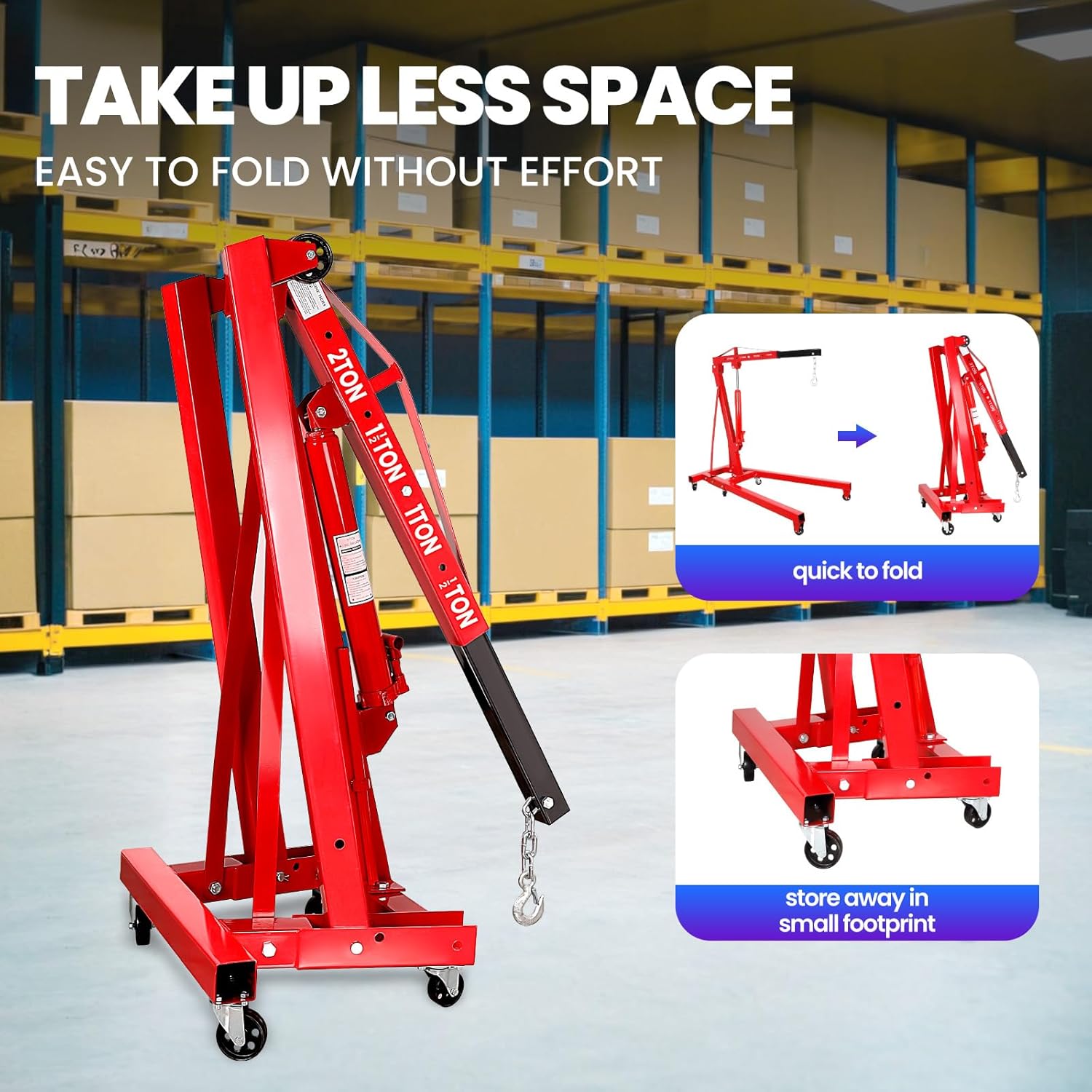 - 【Heavy-Duty Lift Power】: Engineered with a reinforced 0.1" steel frame and dual safety chains, this 2-ton engine hoist easily lifts engines and machinery up to 4400LBS. Ideal for professional auto shops and industrial use.