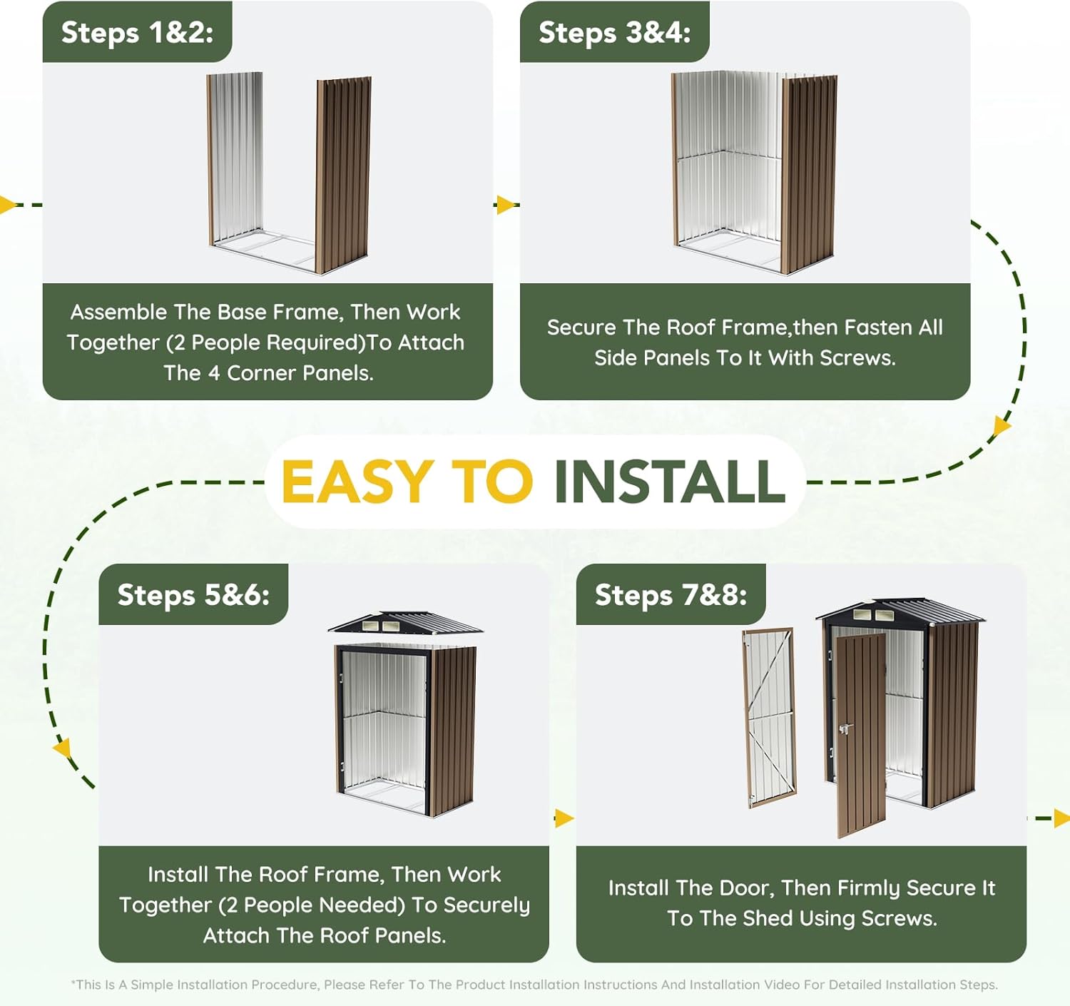 Breezz 5x3FT Outdoor Steel Storage Shed, Lockable Doors, Compact Metal Tool Shed for Garden, Backyard, Patio, Utility, and Bike Storage,Brown