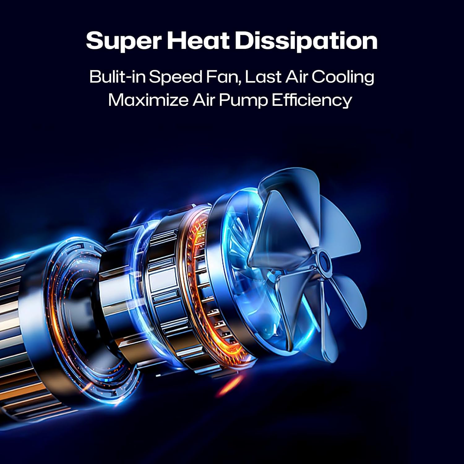 - 【Super Heat Dissipation】It feature the multi-hole design at the tail and a professional built-in fan can reach a maximum speed of 1000 revolutions per minute, allowing the air pump to dissipate heat for a long time and maximize its efficiency.
