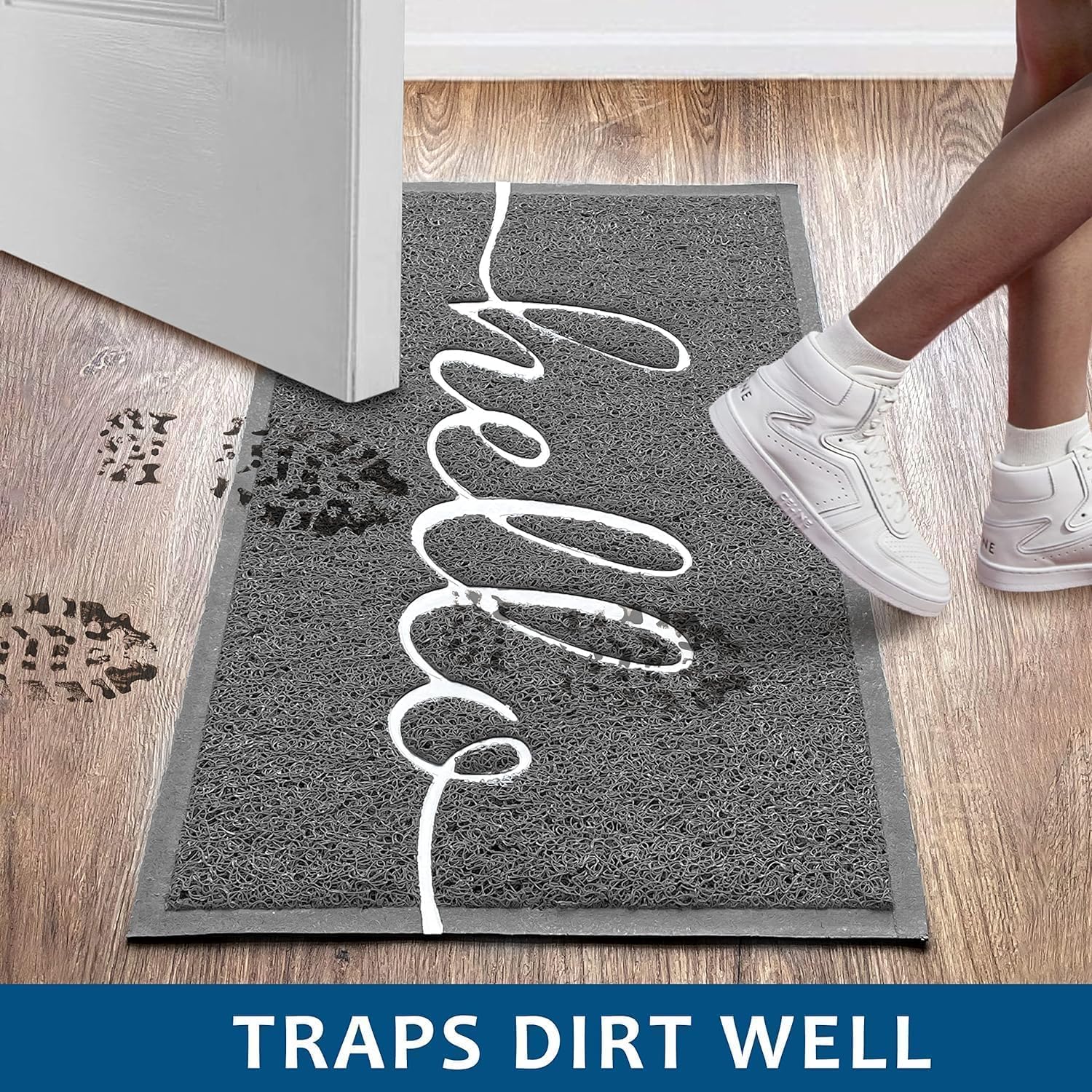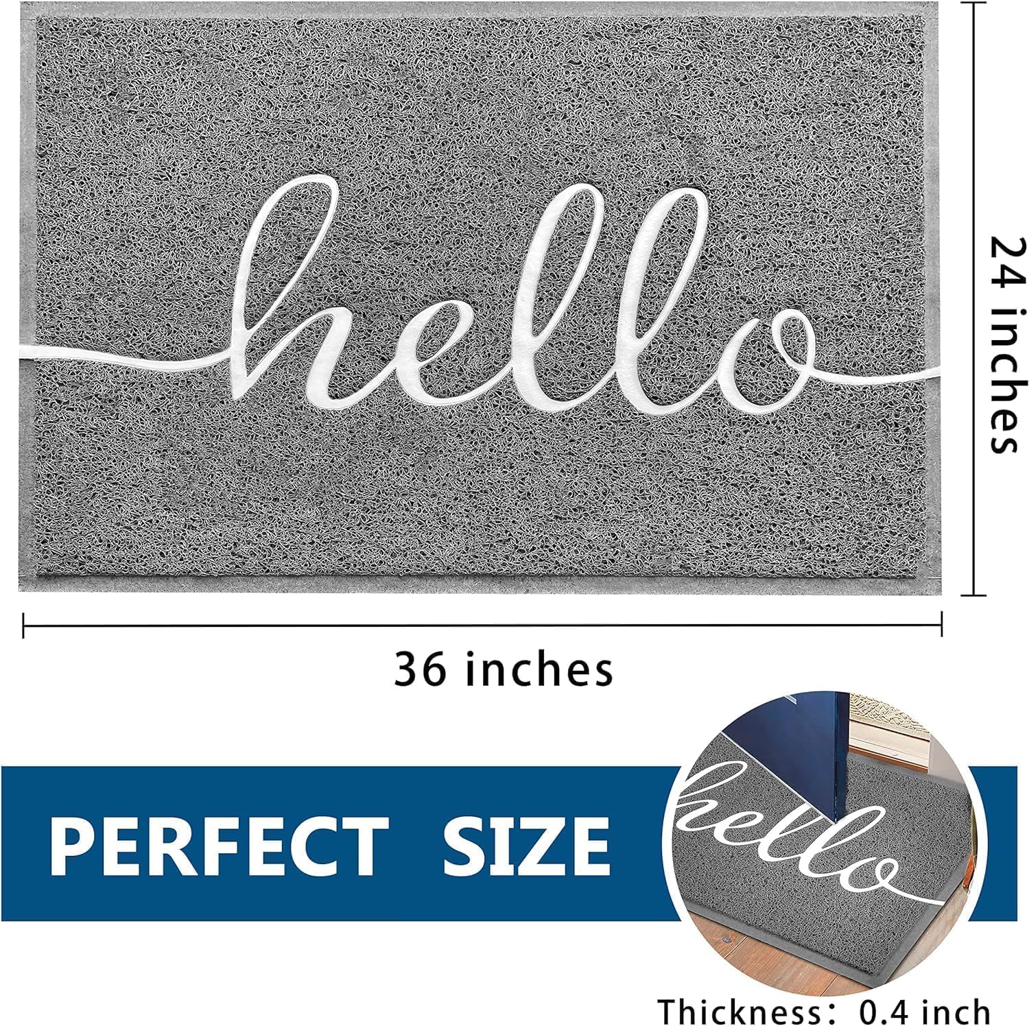EARTHALL Door Mat Outside Inside Hello Doormat, 36"x24", Durable Floor Mat Non Slip Mat Ultra Absorb Mud Easy Clean Front Doormat for Garage, Entryway, Patio, High Traffic Areas, Grey
