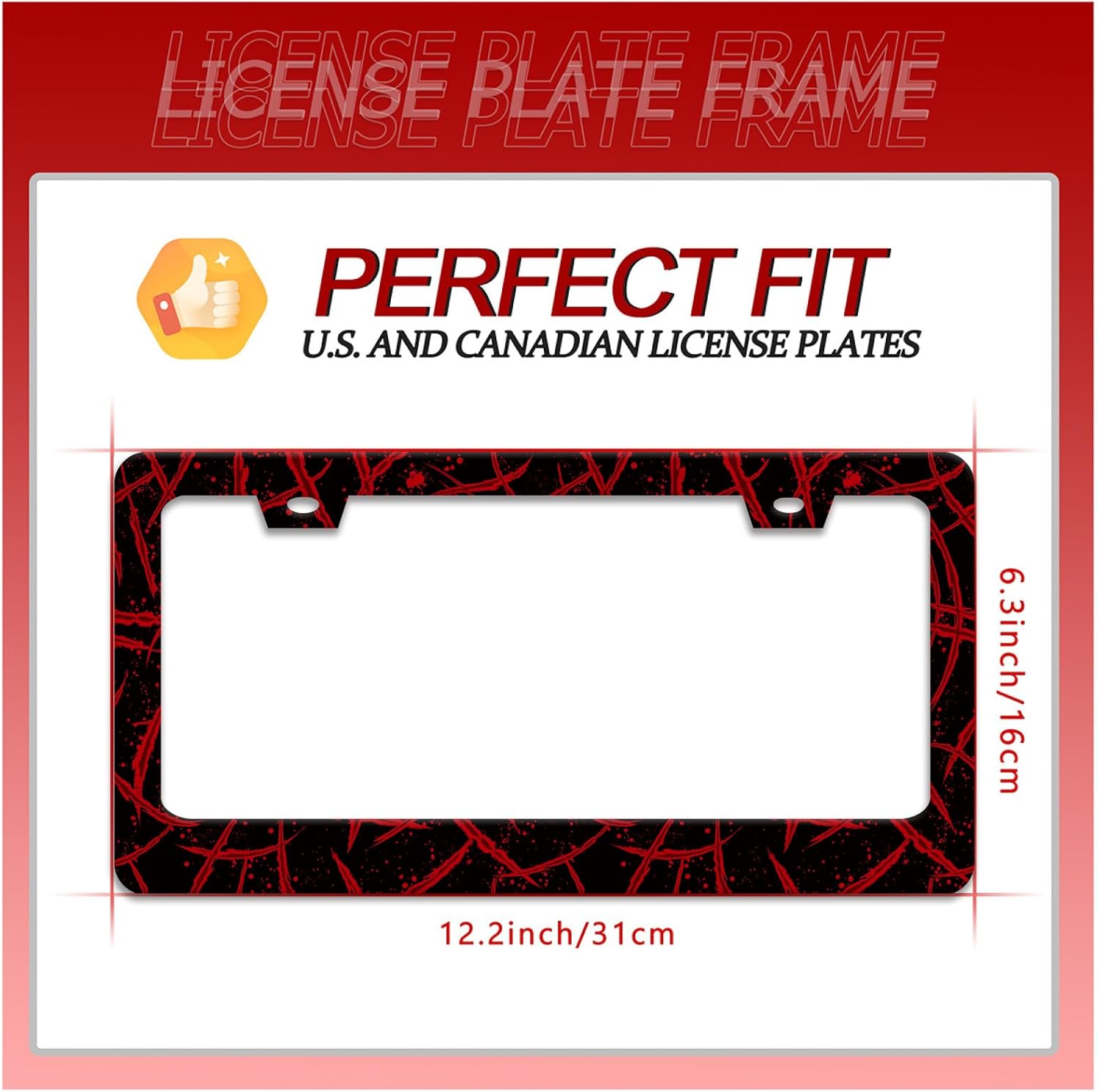 - Us & Canada Standard Sizes: The license plate frame measures 12.2 x 6.3 inches and fits standard US and Canadian license plate frames. Make your car more stylish, stand out and stand out from the crowd.