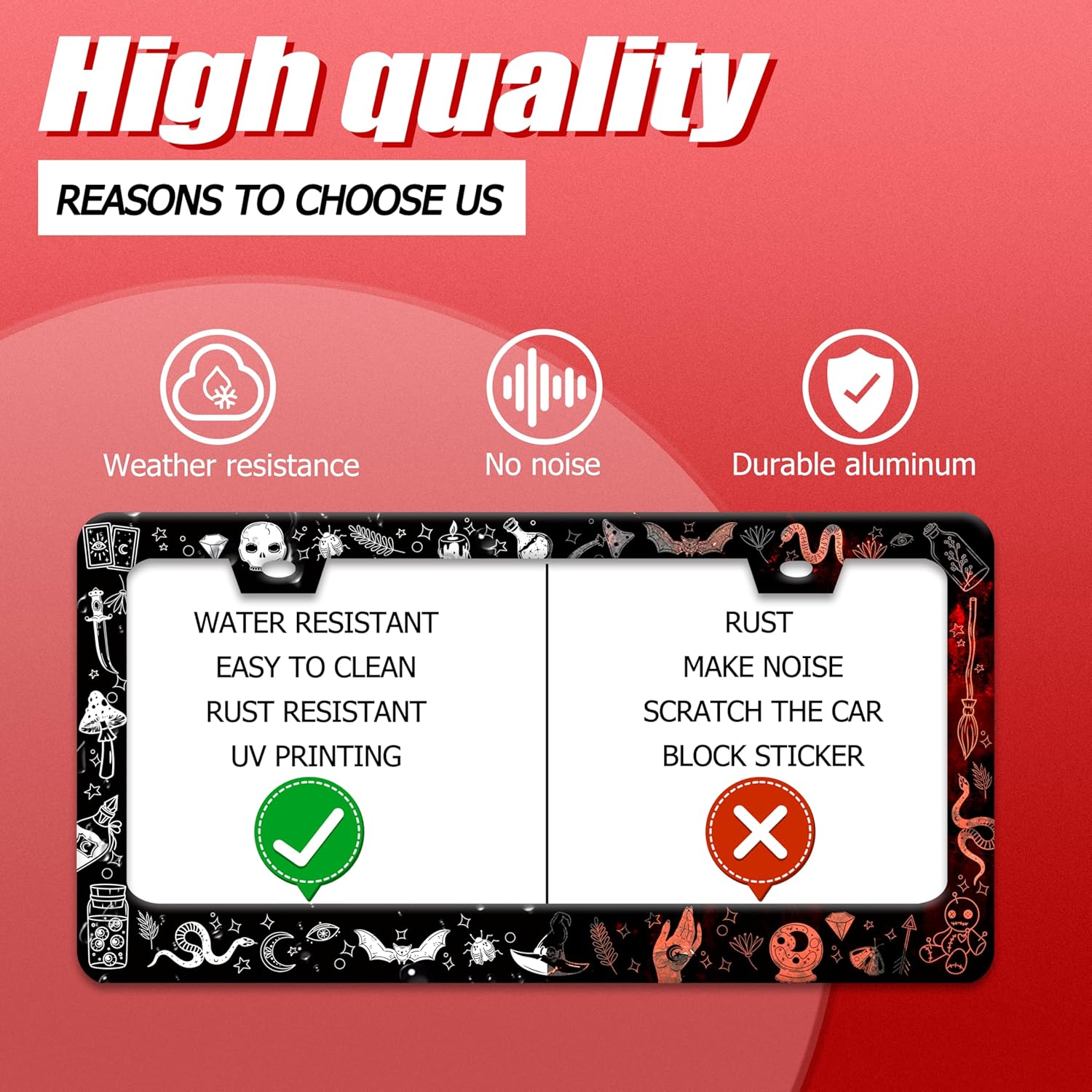 Witch License Plate Frame Gothic Magical License Plate Frames for Car Decorative Parts Stainless Stee License Plate for Standard Us Canada Funny License Plate Holder 12x6 Inch