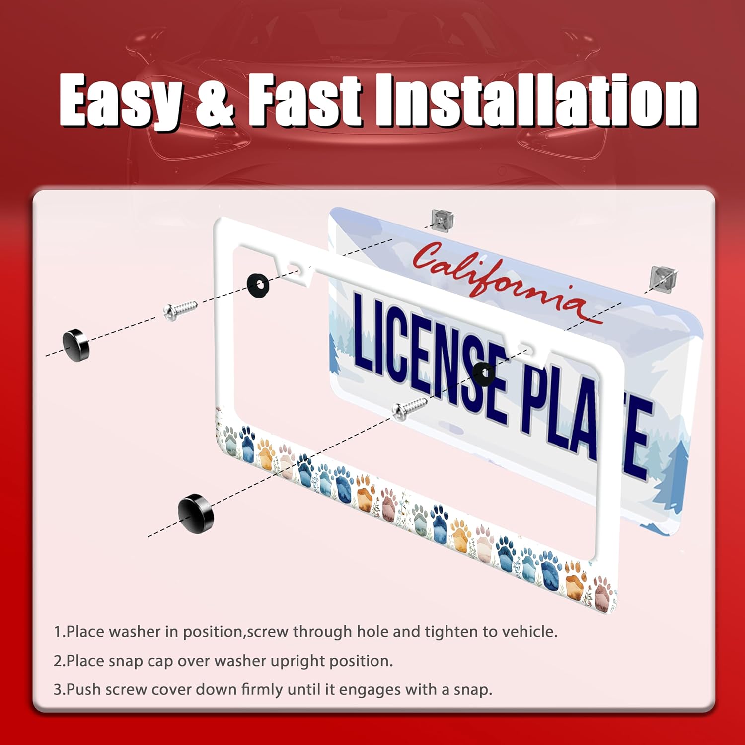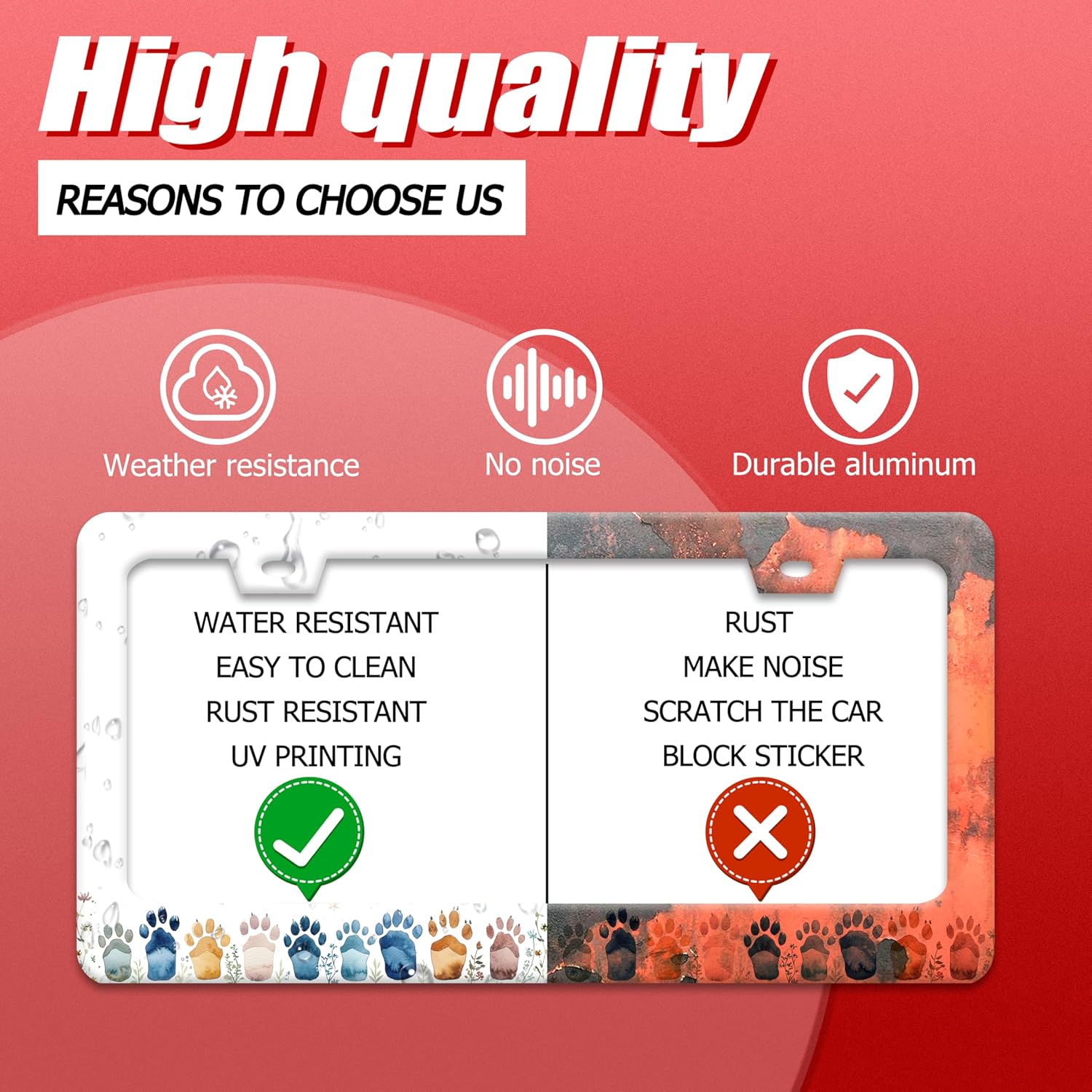 Bear Paw Print License Plate Frame Colorful Animal License Plate Frames Funny for Car Decorative Parts Stainless Stee License Plate for Standard Us Canada Funny License Plate Holder 12x6 Inch