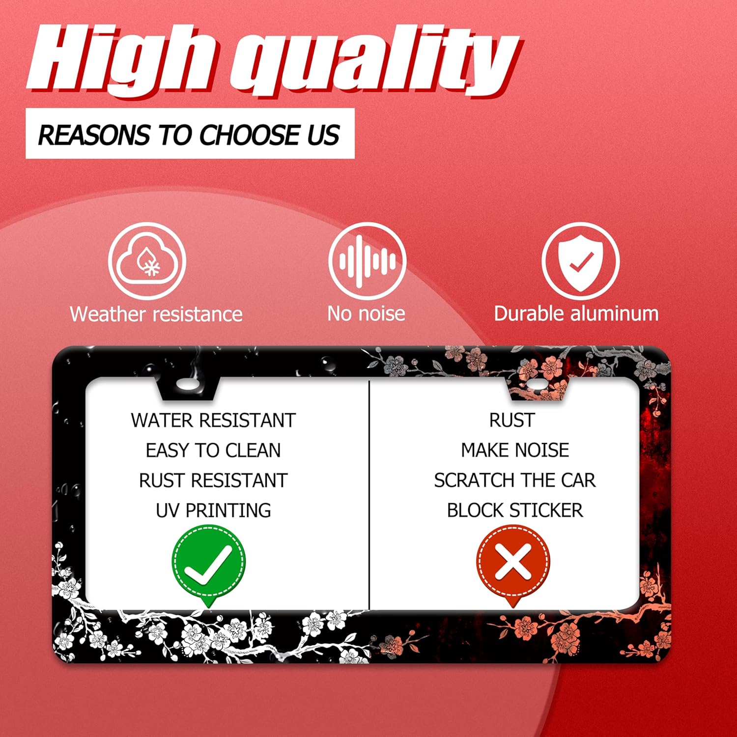 Cherry Blossoms License Plate Frame Beautiful Floral License Plate Frames for Car Decorative Parts Stainless Stee License Plate for Standard Us Canada Funny License Plate Holder 12x6 in for Men Women