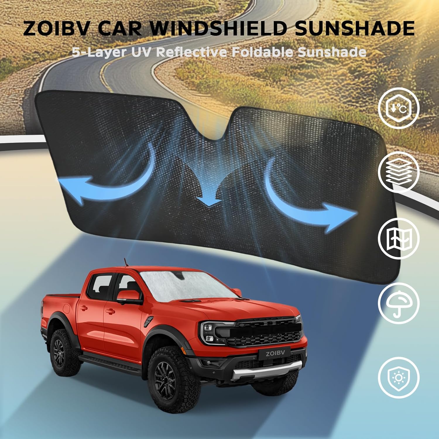 - Precise Fit: This sunshade designed specifically for the Ford Ranger 2019-2025 front windshield. Blocks 99% of infrared radiation; reduces interior temperature. Protects dashboard/leather from radiation and high temperatures, preventing cracking