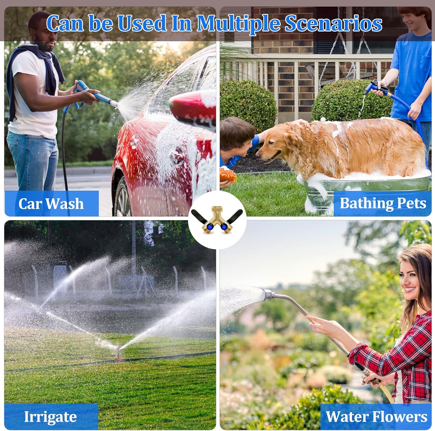 - 【Wide range of uses】Connect multiple hoses to work at the same time, irrigate plants and gardens, cover a larger area and supply water efficiently. Camping trip diverter expands the water supply for RV. Do it at the same time, water the plants in the yard or water the car when washing it. Bathe your pets and play with your kids in the garden and yard in the summer. It can also be used for a variety of irrigation systems, including misting, sprinkler and drip systems.