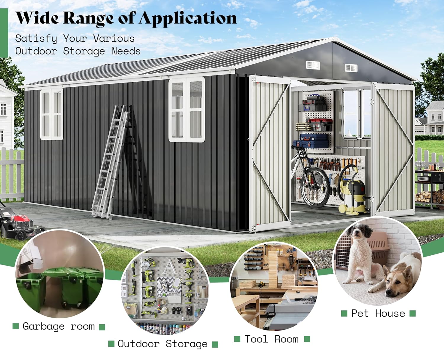 - Spacious Outdoor Storage Shed: 10x16.3x7 FT shed offers substantial storage space, ideal for storing equipments, bicycles and seasonal items, helping to keep your outdoor area tidy and organized