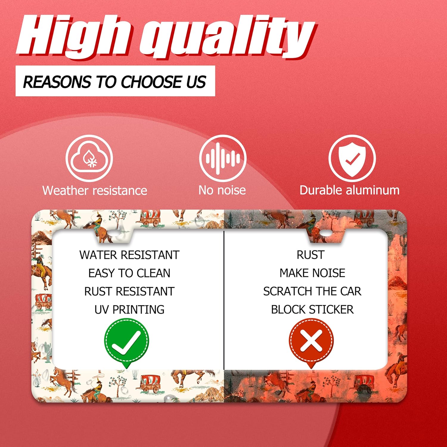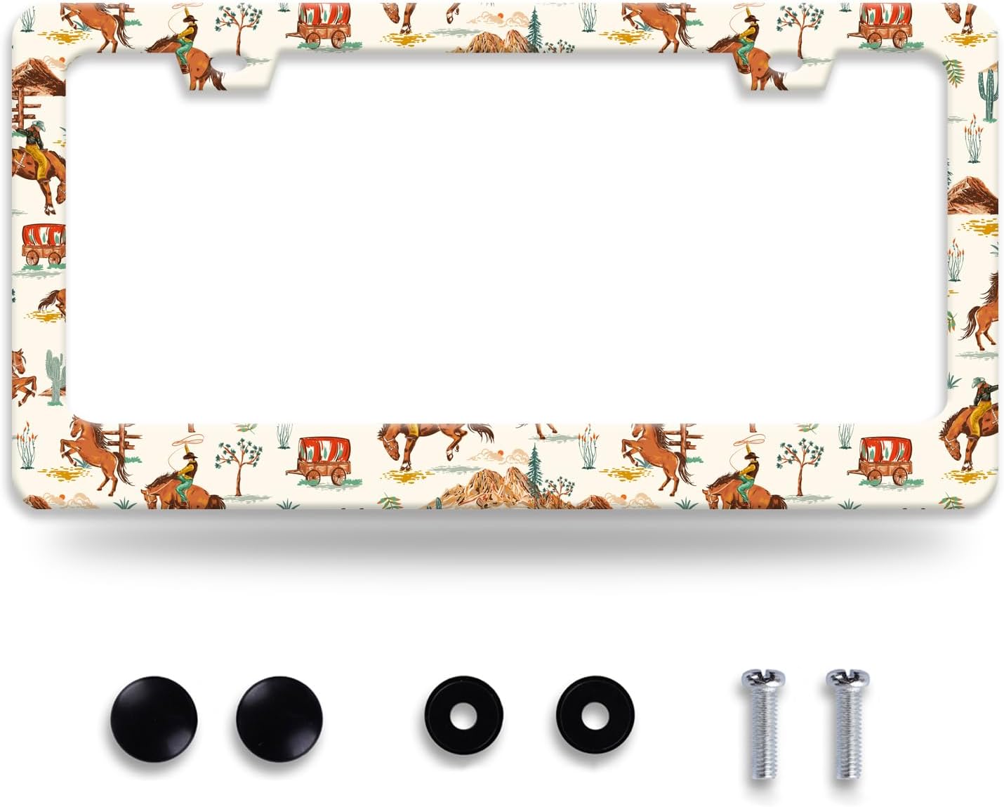 Western Cowboy License Plate Frame Horse Racing License Plate Holder Funny Personalise Car Stainless Stee Decorative Parts for Standard Us Canada Vehicles 12x6 Inch for Women Men