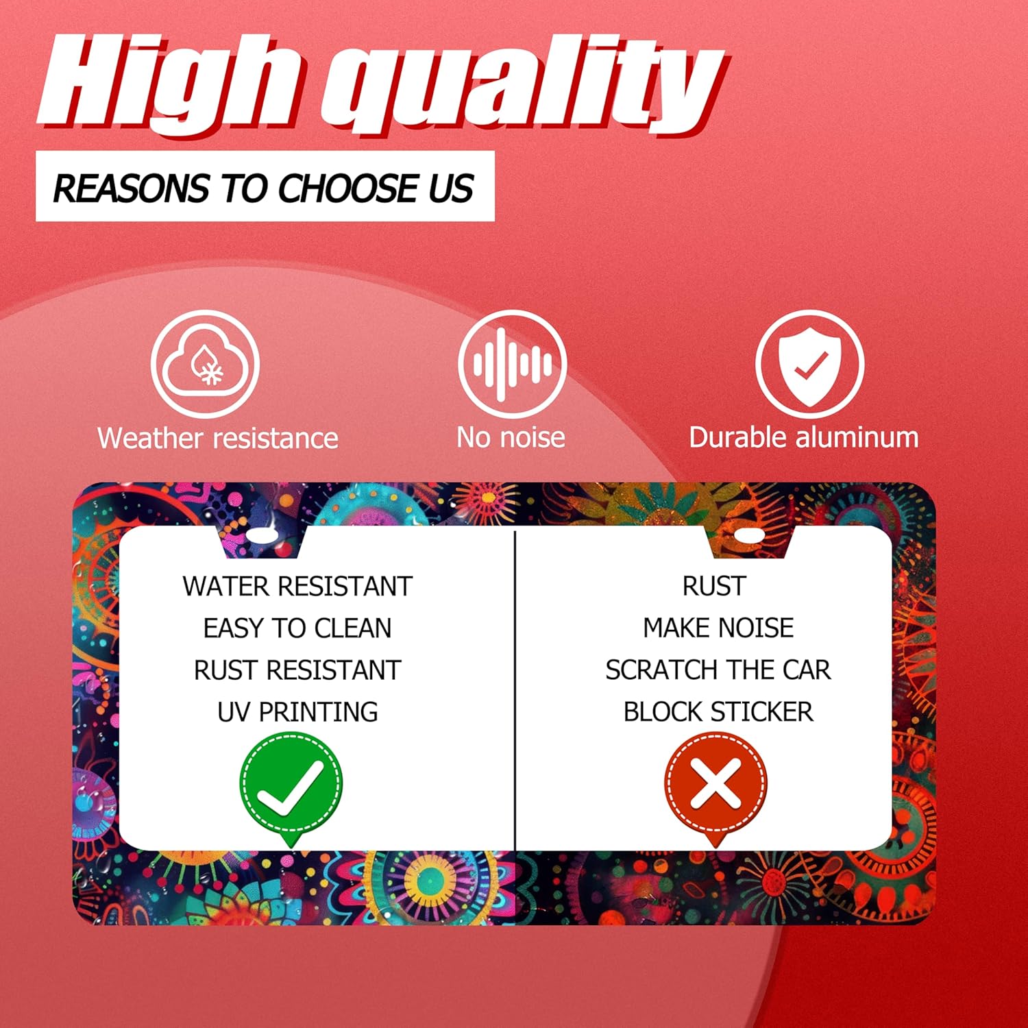 Fantasy Colorful Mandala License Plate Frame Boho Flowers License Plate Holder Funny Personalise Car Stainless Stee Decorative Parts for Standard Us Canada Vehicles 12x6 Inch for Women Men