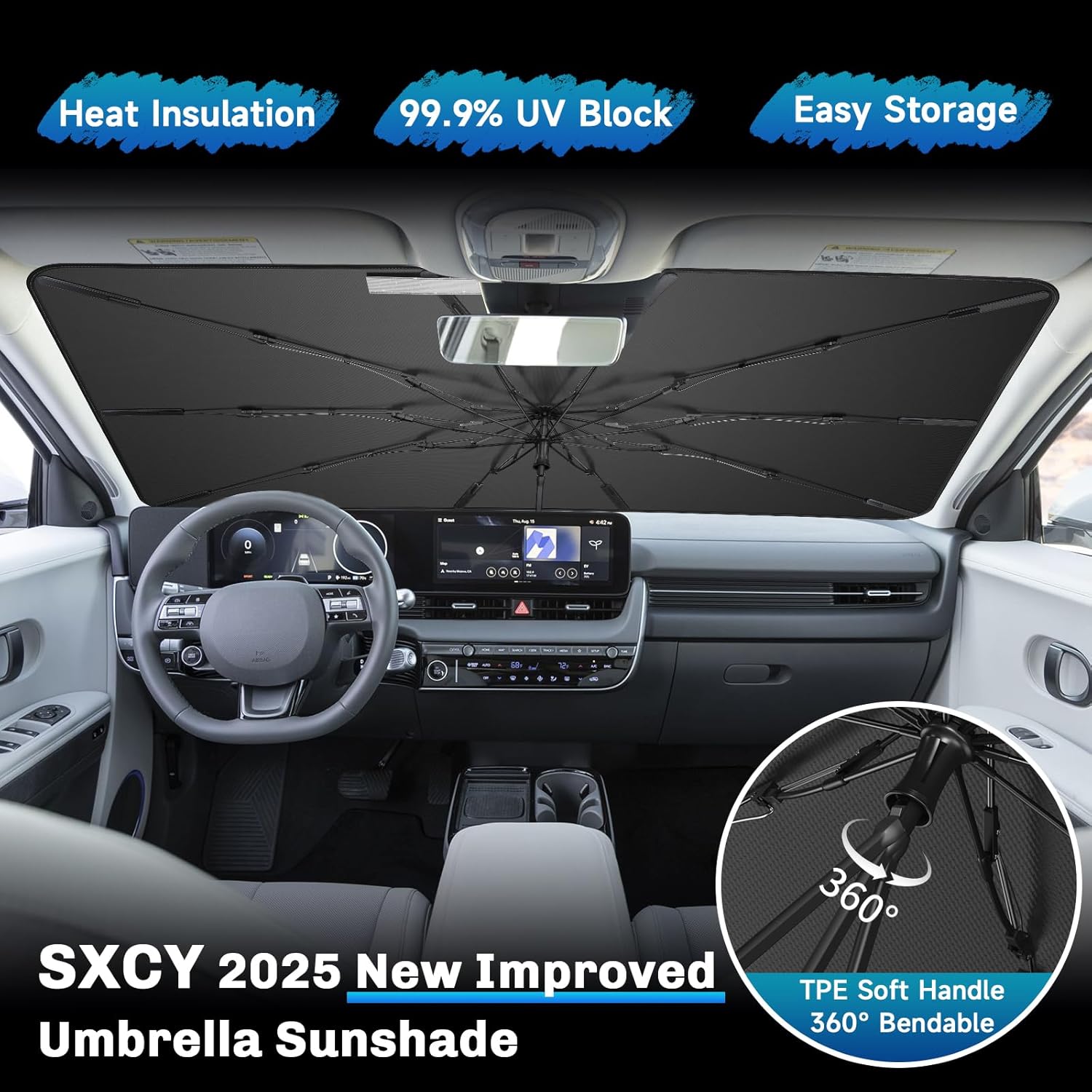 SXCY for 2022-2024 2025 Hyundai Ioniq 5 Windshield Umbrella Sunshade [Easier Foldable] 2023 2024 2025 Ioniq 5 Accessories Sunshade Umbrella for 2024 2025 Ioniq 5 Windshield Umbrella Sun Shade