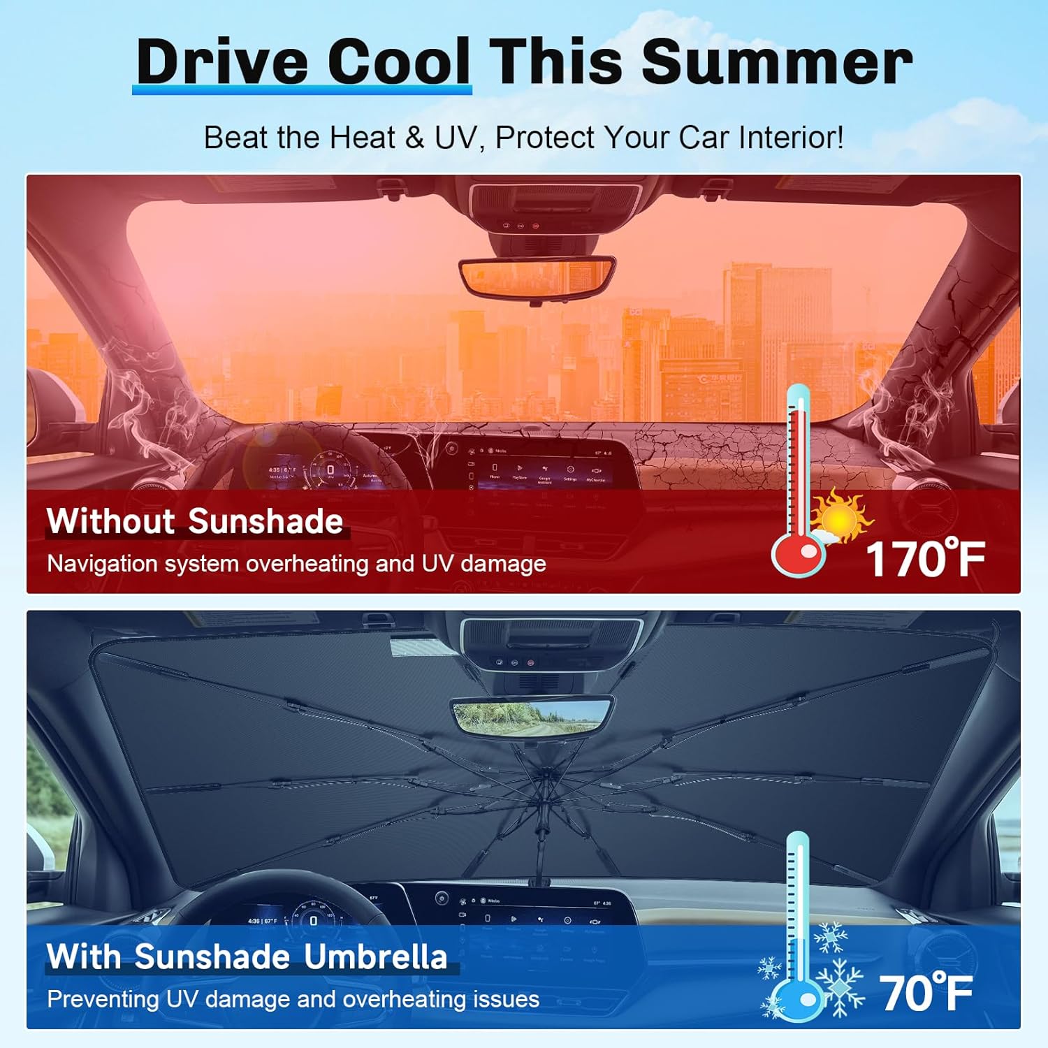 - 1. Sun & Heat Insulation: Windshield Umbrella Sunshade for 2025 Chevy Equinox EV Accessories, 99.9% UV protection, upgraded wrinkle-resistant fabric reflects heat, keeps car cool. Protects interior from fading & cracking, ensuring comfort on hottest days