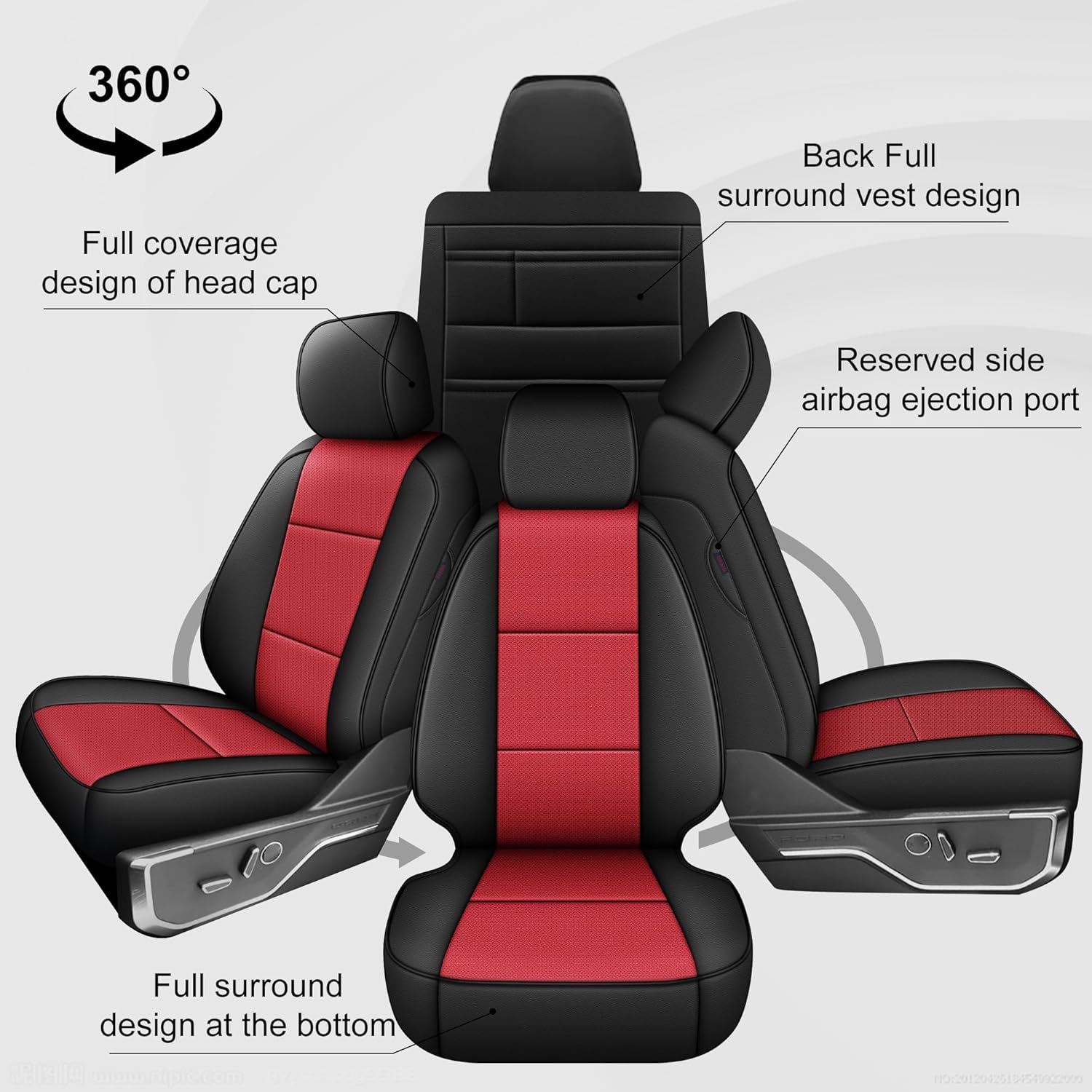 AOMSAZTO Front Seat Covers for Ford F150 XL XLT: 2015-2024 SuperCrew & F250 F350 F450 2017-2024 Super Duty Crew Cab XL XLT Faux Leather Full Set Seat Cover (Black + Red, 2PCS Front)