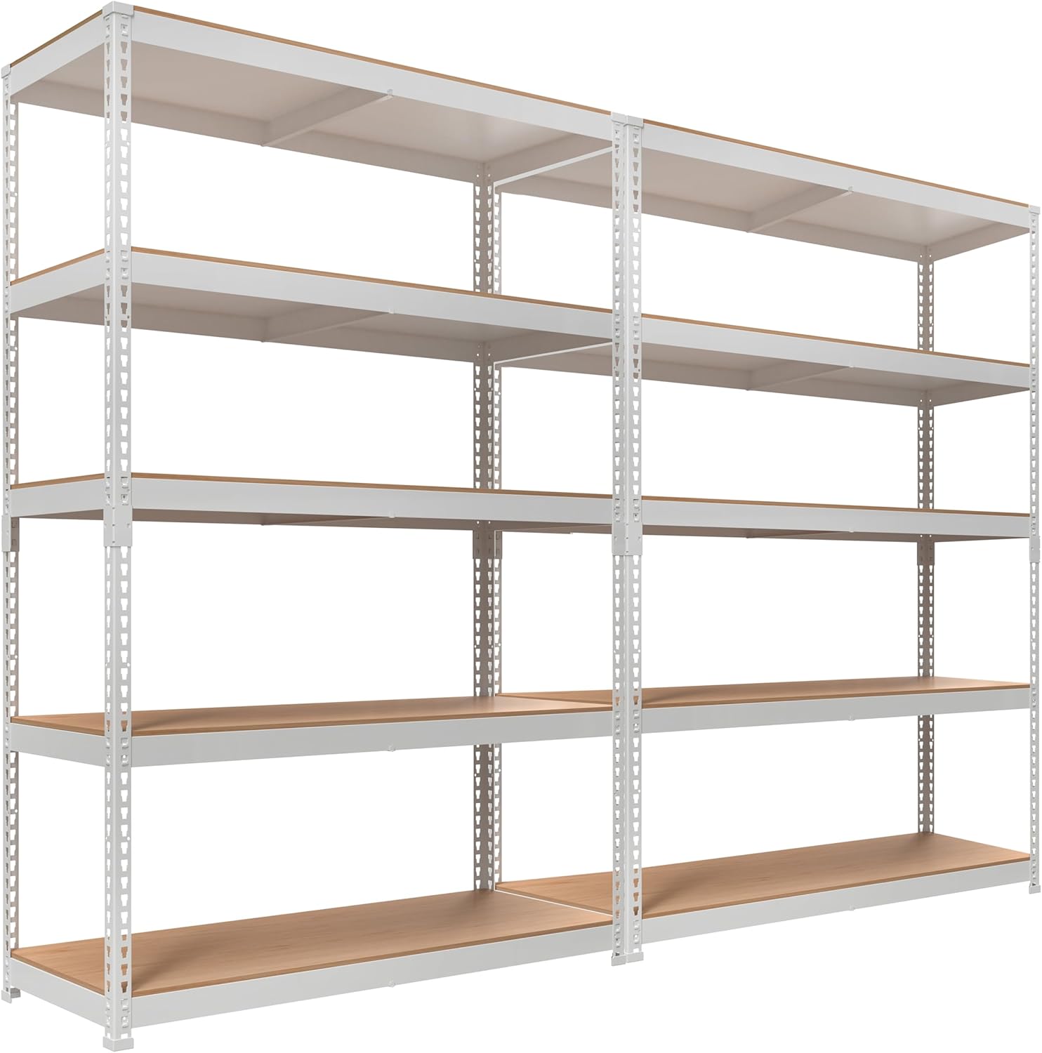 HOMEDANT White 5 Tier Laminated Boltless Heavy Duty Garage Storage Adjustable Wide Size Metal Shelving Unit Utility Rack Shelves Organization Shelf Shed Warehouse 47.7" W x 18.2" D x 71.3" H 2Pack