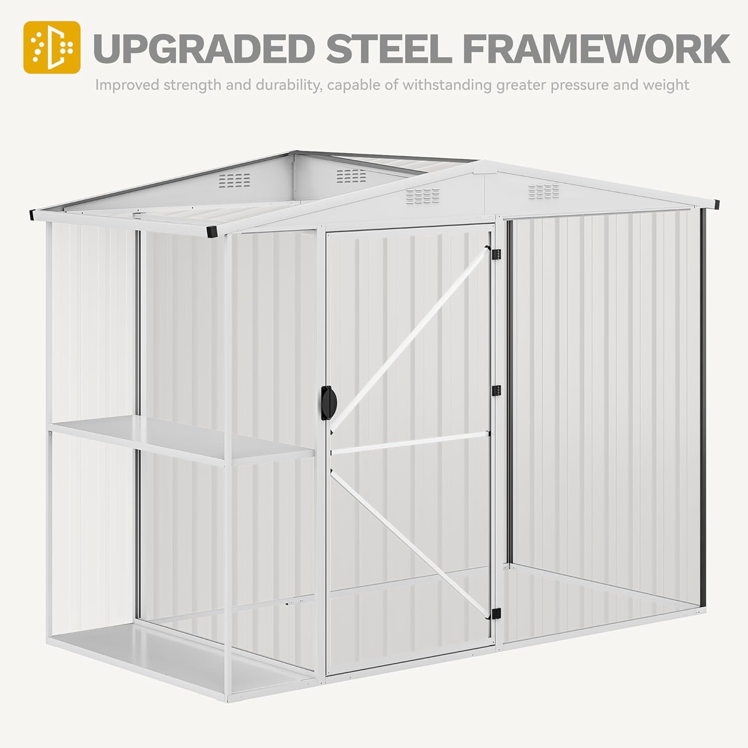 - Spacious 2-Tier Storage Solution: This 8'x4' outdoor storage shed (90.9"L x 45.9"W x 70.8"H) features two versatile tiers, ideal for stashing garden tools, bikes, or lawn gear; It doubles as a cozy pet haven or a lush backyard plant greenhouse