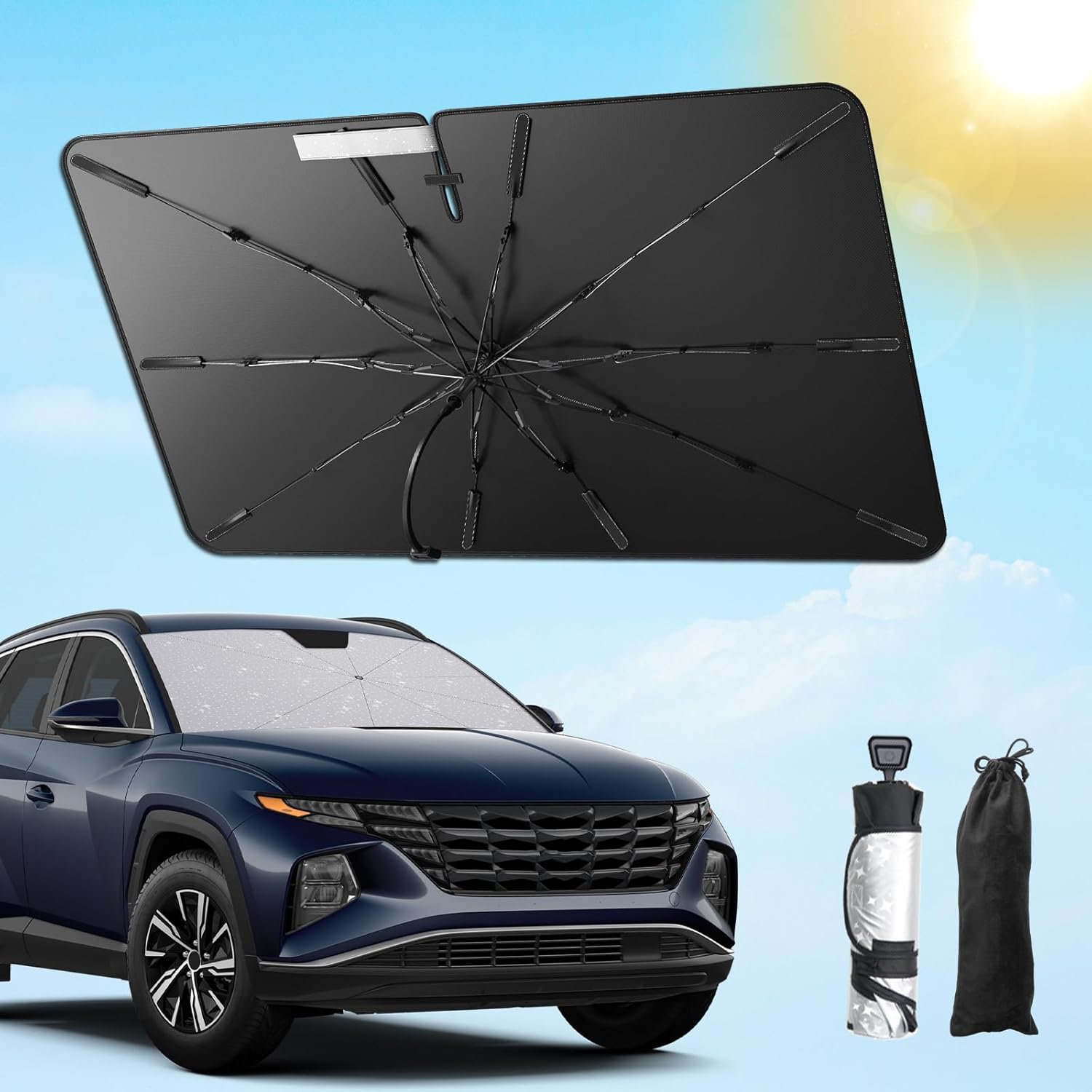 - 1. Sun & Heat Insulation: Windshield Umbrella Sunshade for 2022-2024 2025 Hyundai Tucson Accessories, 99.9% UV protection, upgraded wrinkle-resistant fabric reflects heat, keeps car cool. Protects interior from fading & cracking, ensuring comfort on hottest days