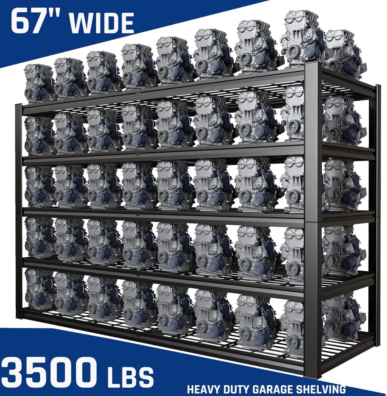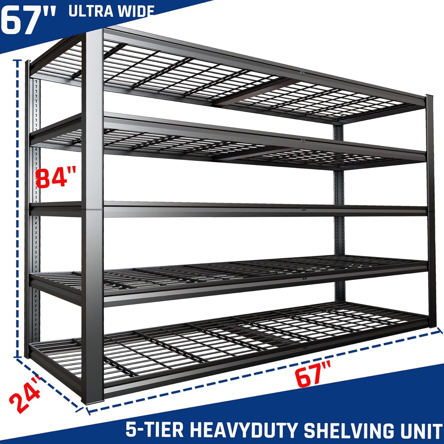 - ăPerfect for Multi-Scenario StorageâăIdeal for âgarage shelvingâ, âworkshop storageâ, or âcommercial shelvingâ needs, this 67-inch-wide unit effortlessly organizes automotive parts, power tools, bulk supplies, or seasonal gear. Its âdouble-layer wire decksâ and âadjustable 5-tier designâ adapt to garages, warehouses, basement or shop shelves, while the â650 lbs/shelf capacityâ and wobble-free structure ensure safe, space-saving storage for heavy or oversized items.