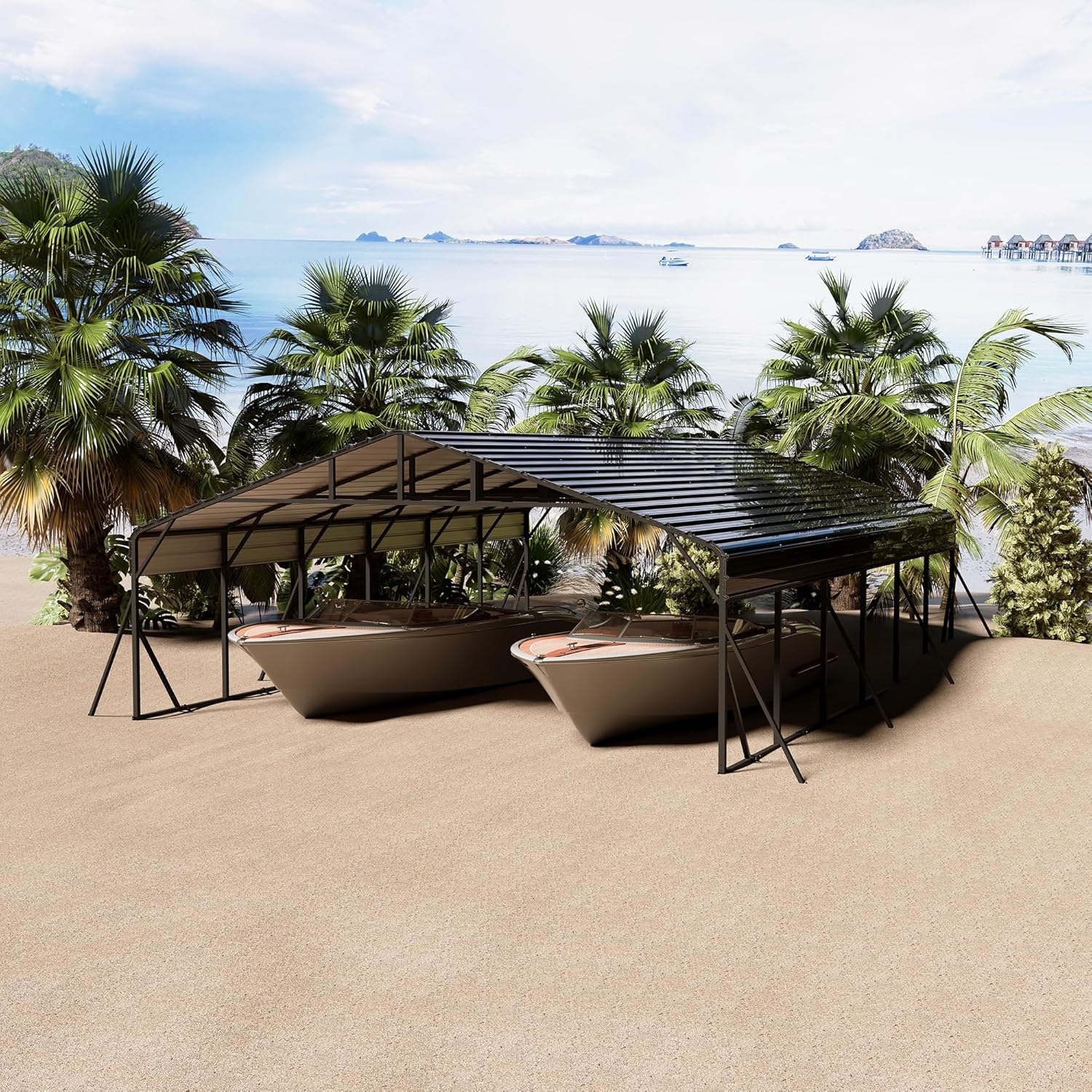 - MULTI-USE METAL CARPORT - The outdoor metal carport with heavy duty galvanized canopy garage car shelter offers ample space for vehicles and trucks. It can serve as a carport canopy and a shelter for outdoor activities like parties, weddings, and trade shows. The gray finish adds an elegant and stylish charm to your backyard. Customize your outdoor life now.