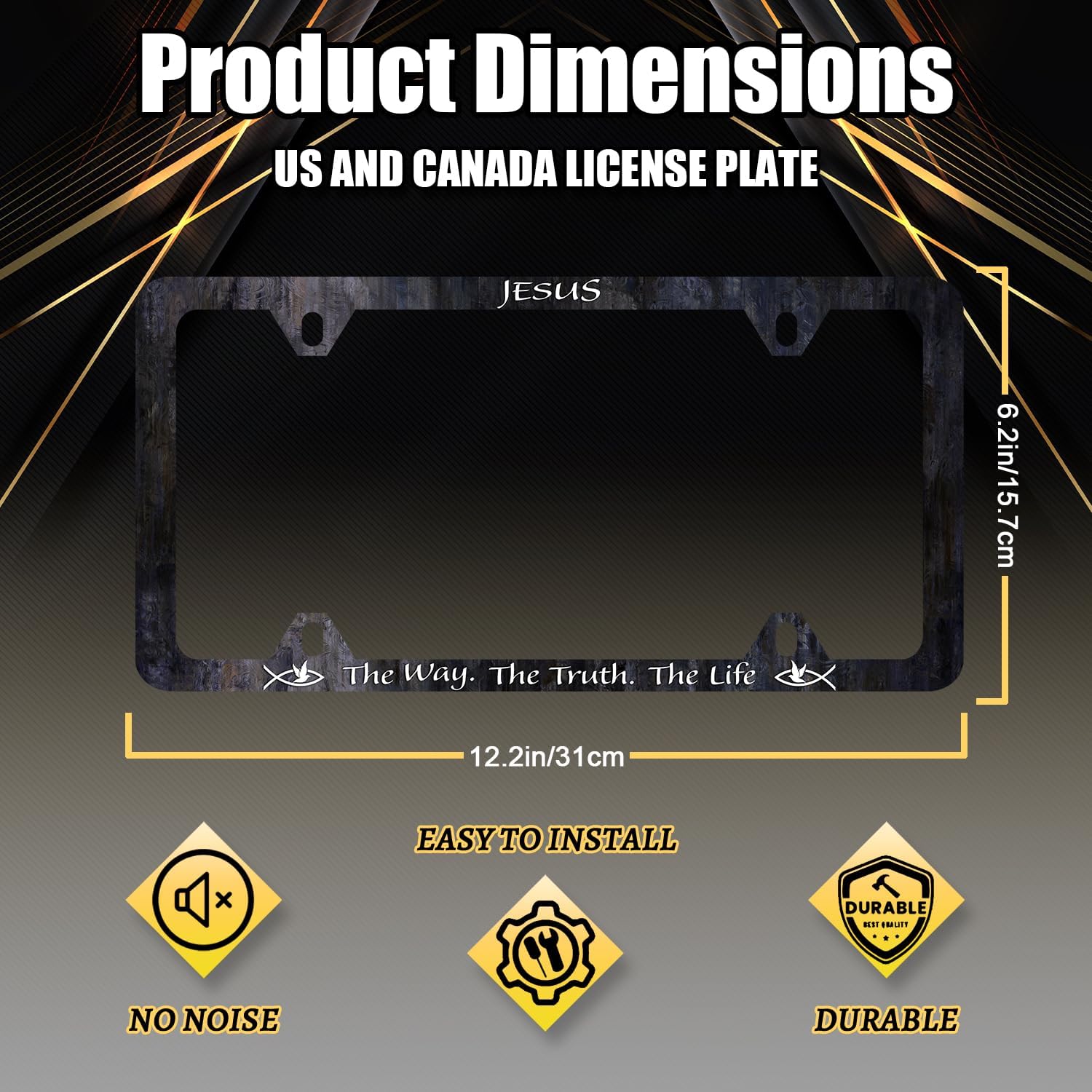 Jesus The Way The Truth The Life License Plate Frame Christian License Plate Holder Stainless Steel Funny Design Compatible with Standard License Plate for USA Canada 12.3" x 6.3"