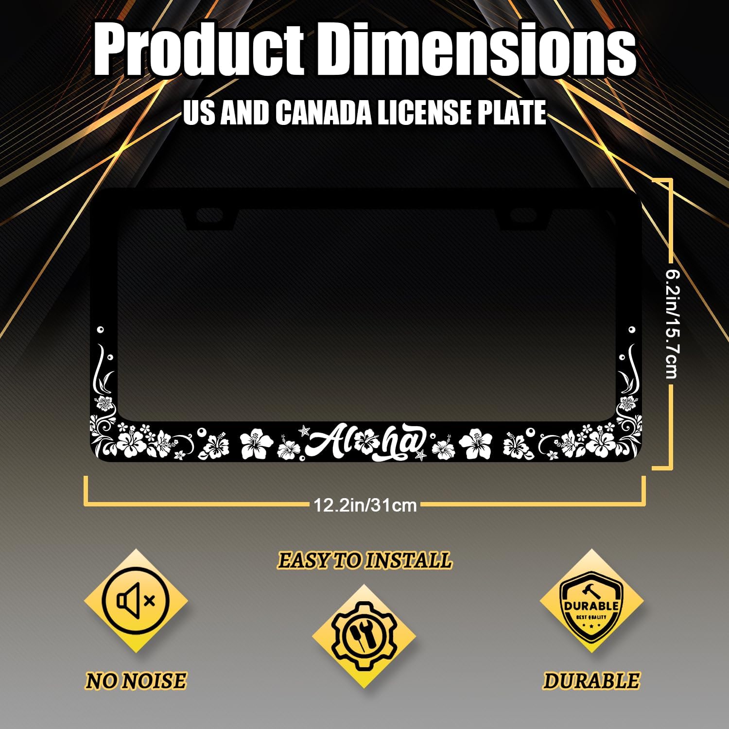 - Size: The size of the license plate frame is 12.3" x 6.3" , it fits all standard size US and Canada vehicle license plates.Fashion design frame fits perfectly on your car license plate.