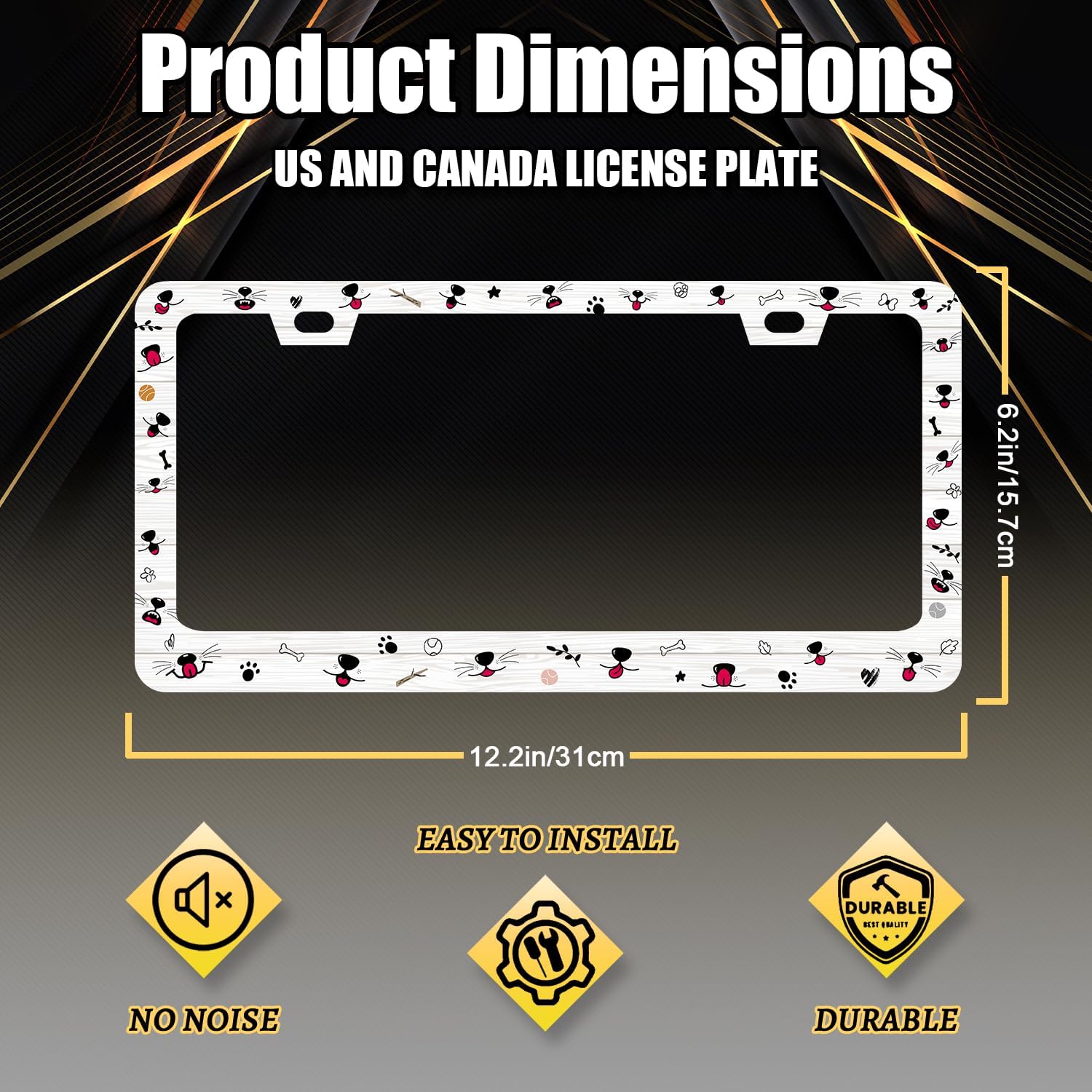 - Size: The size of the license plate frame is 12.3" x 6.3" , it fits all standard size US and Canada vehicle license plates.Fashion design frame fits perfectly on your car license plate.