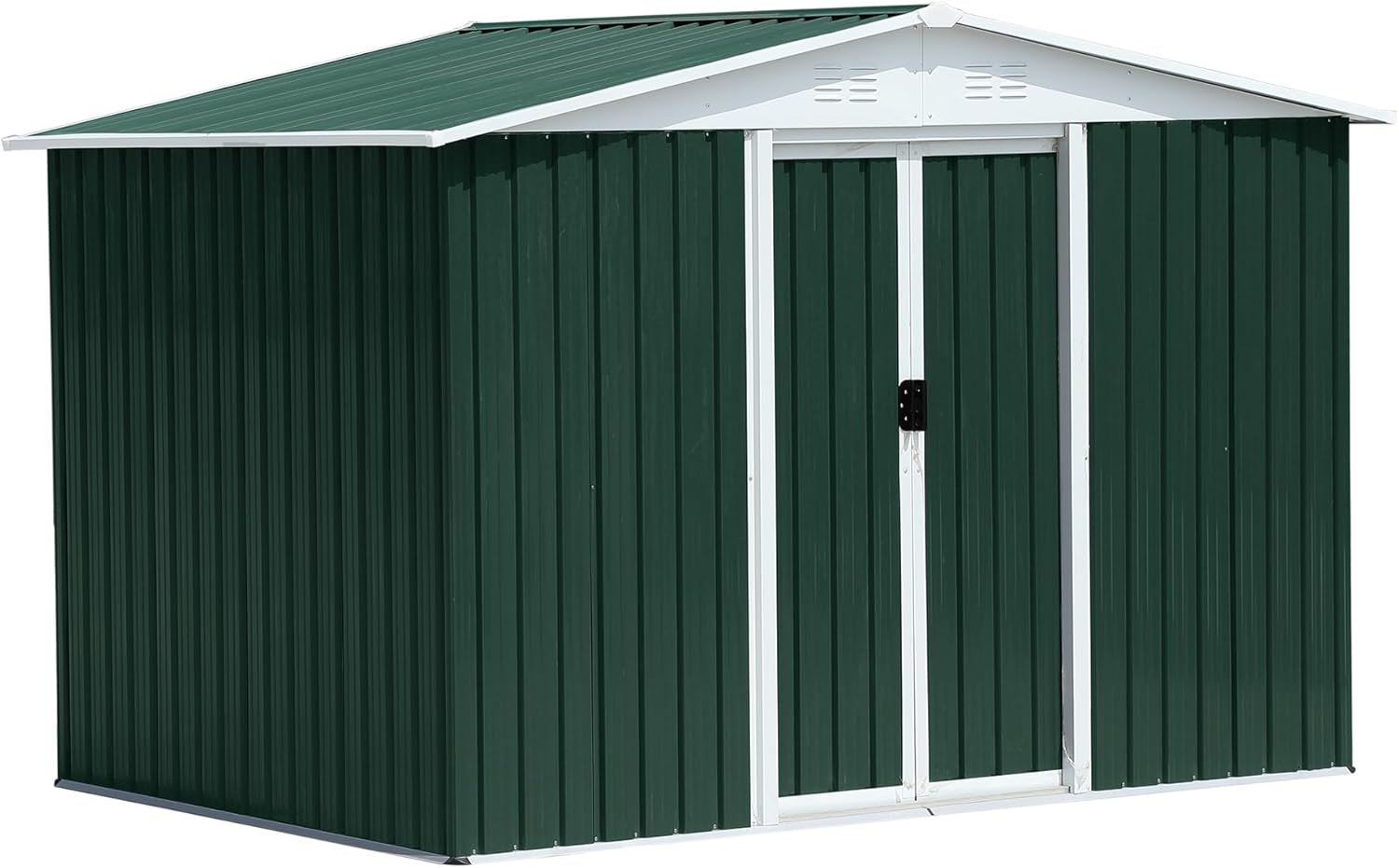 - ๐ก๐๐ฅ๐ฅ-๐ฐ๐๐๐ญ๐ก๐๐ซ ๐๐ญ๐จ๐ซ๐๐ ๐ ๐๐ก๐๐: Our metal shed 6x8 features smooth, lockable sliding doors with handles for easy opening and closing. It serves not only as a safe space for storing garden tools but also as a warm pet house. The sloped roof of the storage building effectively prevents leaks and snow accumulation, while the four integrated punched vents improve airflow, helping to keep your items dry