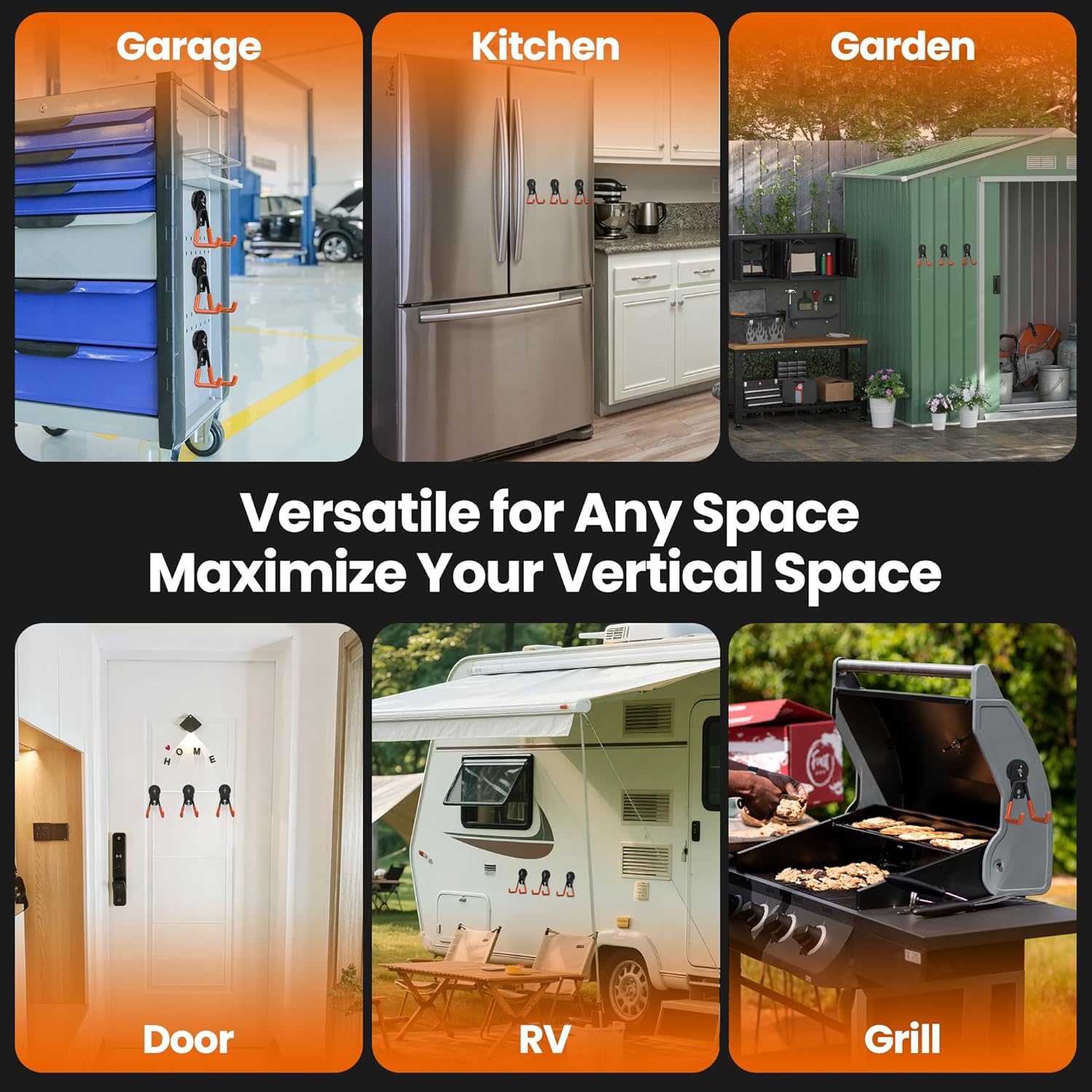 - 【Maximize Vertical Storage Space】 These mega gator magnetic hooks heavy duty transform unused vertical spaces (metal walls, cabinets, pegboards, truck beds) into functional storage areas, solving the problem of limited space. Perfect for organizing garage tools, garden equipment, kitchen utensils, office supplies, and more — quickly access items whenever you need them