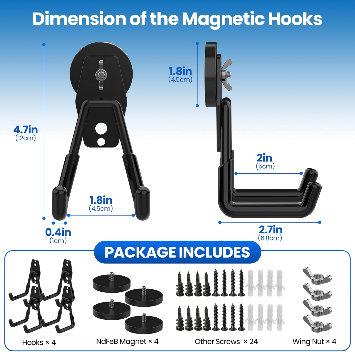 - 【Multi-Pack Magnetic Hooks Heavy Duty】 Our strong magnetic utility hooks are upgraded with high-performance neodymium magnets, offering a versatile storage solution for homes, garages, workshops, kitchens, gardens, and more. With 4 Pack large magnetic hooks in one set, they meet daily storage needs for both light and heavy items, keeping your space organized and clutter-free