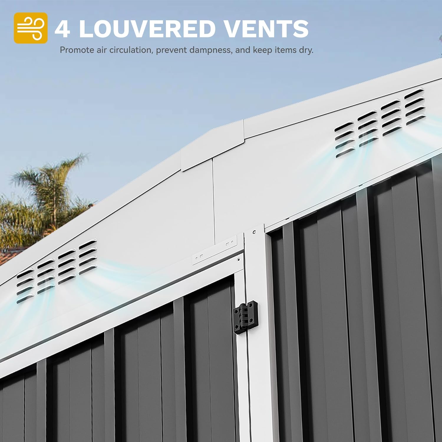 - Innovative Roof & Ventilation: The metal storage facility's sloped roof prevents water and snow buildup, while two top ventilation openings enhance air circulation for a pleasant interior environment