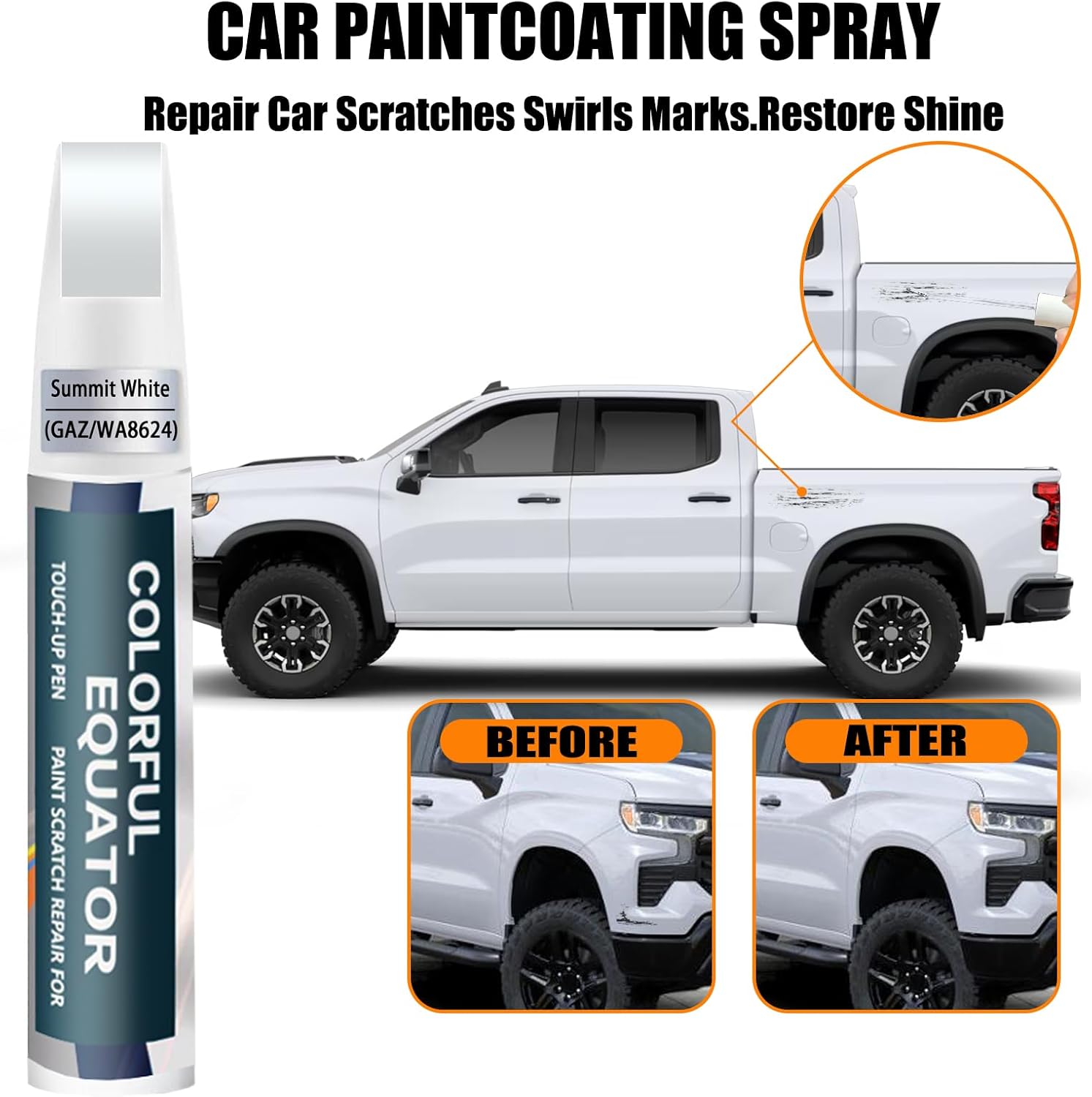 Summit White(GAZ/WA8624) Touch Up Paint Compatible with Chevrolet, Car Paint Pen Scratch Repair Two-In-One Touch Up Paint, Premium Car Scratch Remover for Deep Scratches